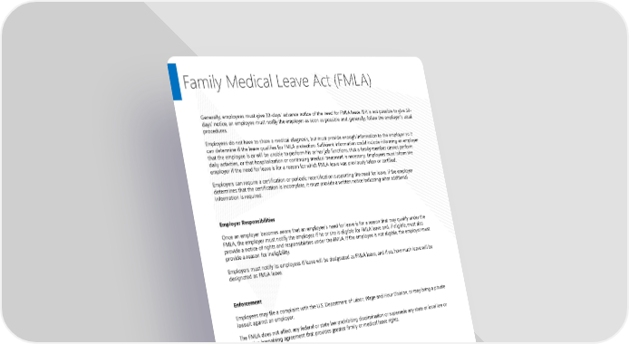 Page 23 | Jay School Corporation 2025 Compliance Bundle Family Medical Leave Act (FMLA) Generally, employees must give 30-days’ advance notice of the need for FMLA leave. If it is not possible to give 30- days’ notice, an employee must notify the employer as soon as possible and, generally, follow the employer’s usual procedures. Employees do not have to share a medical diagnosis, but must provide enough information to the employer so it can determine if the leave qualifies for FMLA protection. Sufficient information could include informing an employer that the employee is or will be unable to perform his or her job functions, that a family member cannot perform daily activities, or that hospitalization or continuing medical treatment is necessary. Employees must inform the employer if the need for leave is for a reason for which FMLA leave was previously taken or certified. Employers can require a certification or periodic recertification supporting the need for leave. If the employer determines that the certification is incomplete, it must provide a written notice indicating what additional information is required. Employer Responsibilities Once an employer becomes aware that an employee’s need for leave is for a reason that may qualify under the FMLA, the employer must notify the employee if he or she is eligible for FMLA leave and, if eligible, must also provide a notice of rights and responsibilities under the FMLA. If the employee is not eligible, the employer must provide a reason for ineligibility. Employers must notify its employees if leave will be designated as FMLA leave, and if so, how much leave will be designated as FMLA leave. Enforcement Employees may file a complaint with the U.S. Department of Labor, Wage and Hour Division, or may bring a private lawsuit against an employer. The FMLA does not affect any federal or state law prohibiting discrimination or supersede any state or local law or collective bargaining agreement that provides greater family or medical leave rights.