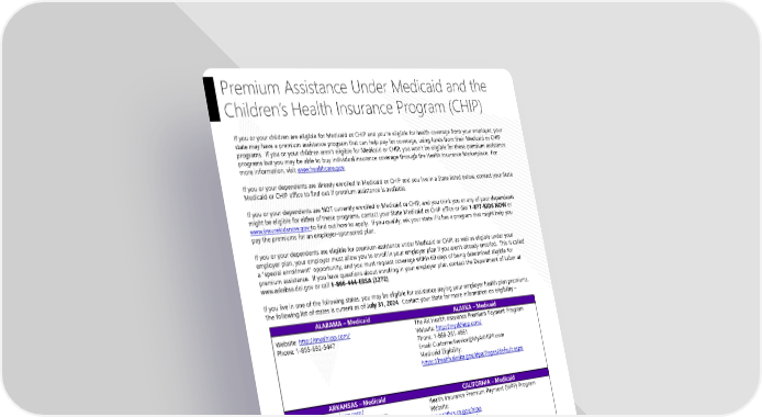 Premium Assistance Under Medicaid and the Children’s Health Insurance Program (CHIP) If you or your children are eligible for Medicaid or CHIP and you’re eligible for health coverage from your employer, your state may have a premium assistance program that can help pay for coverage, using funds from their Medicaid or CHIP programs. If you or your children aren’t eligible for Medicaid or CHIP, you won’t be eligible for these premium assistance programs but you may be able to buy individual insurance coverage through the Health Insurance Marketplace. For more information, visit www.healthcare.gov. If you or your dependents are already enrolled in Medicaid or CHIP and you live in a State listed below, contact your State Medicaid or CHIP office to find out if premium assistance is available. If you or your dependents are NOT currently enrolled in Medicaid or CHIP, and you think you or any of your dependents might be eligible for either of these programs, contact your State Medicaid or CHIP office or dial 1-877-KIDS NOW or www.insurekidsnow.gov to find out how to apply. If you qualify, ask your state if it has a program that might help you pay the premiums for an employer-sponsored plan. If you or your dependents are eligible for premium assistance under Medicaid or CHIP, as well as eligible under your employer plan, your employer must allow you to enroll in your employer plan if you aren’t already enrolled. This is called a “special enrollment” opportunity, and you must request coverage within 60 days of being determined eligible for premium assistance. If you have questions about enrolling in your employer plan, contact the Department of Labor at www.askebsa.dol.gov or call 1-866-444-EBSA (3272). If you live in one of the following states, you may be eligible for assistance paying your employer health plan premiums. The following list of states is current as of July 31, 2024. Contact your State for more information on eligibility – ALABAMA – Medicaid ALASKA – Medicaid Website: http://myalhipp.com/ The AK Health Insurance Premium Payment Program Phone: 1-855-692-5447 Website: http://myakhipp.com/ Phone: 1-866-251-4861 Email: [email protected] Medicaid Eligibility: https://health.alaska.gov/dpa/Pages/default.aspx ARKANSAS – Medicaid CALIFORNIA – Medicaid Website: http://myarhipp.com/ Health Insurance Premium Payment (HIPP) Program Phone: 1-855-MyARHIPP (855-692-7447) Website: http://dhcs.ca.gov/hipp Phone: 916-445-8322 Fax: 916-440-5676 Email: [email protected] COLORADO – Health First Colorado (Colorado’s FLORIDA – Medicaid Medicaid Program) & Child Health Plan Plus (CHP+) Website: Health First Colorado Website: https://www.flmedicaidtplrecovery.com/flmedicaidtplrecov https://www.healthfirstcolorado.com/ Health First Colorado Member Contact Center: ery.com/hipp/index.html 1-800-221-3943/State Relay 711 Phone: 1-877-357-3268 CHP+: hcpf.colorado.gov/child-health-plan-plus CHP+ Customer Service: 1-800-359-1991/State Relay 711 Health Insurance Buy-In Program (HIBI): https://www.mycohibi.com/ HIBI Customer Service: 1-855-692-6442 Page 9 | DePauw University | Plan Year 2025 This Compliance Overview is not intended to be exhaustive nor should any discussion or opinions be construed as legal advice. Readers should contact legal counsel for legal advice.