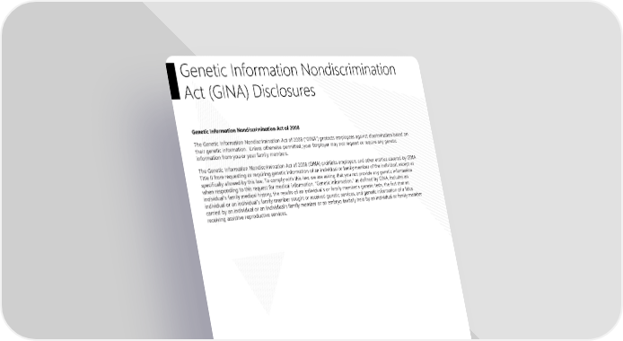 Genetic Information Nondiscrimination Act (GINA) Disclosures Genetic Information Nondiscrimination Act of 2008 The Genetic Information Nondiscrimination Act of 2008 (“GINA”) protects employees against discrimination based on their genetic information. Unless otherwise permitted, your Employer may not request or require any genetic information from you or your family members. The Genetic Information Nondiscrimination Act of 2008 (GINA) prohibits employers and other entities covered by GINA Title II from requesting or requiring genetic information of an individual or family member of the individual, except as specifically allowed by this law. To comply with this law, we are asking that you not provide any genetic information when responding to this request for medical information. “Genetic information,” as defined by GINA, includes an individual’s family medical history, the results of an individual’s or family member’s genetic tests, the fact that an individual or an individual’s family member sought or received genetic services, and genetic information of a fetus carried by an individual or an individual’s family member or an embryo lawfully held by an individual or family member receiving assistive reproductive services. Page 13 | DePauw University | Plan Year 2025 This Compliance Overview is not intended to be exhaustive nor should any discussion or opinions be construed as legal advice. Readers should contact legal counsel for legal advice.
