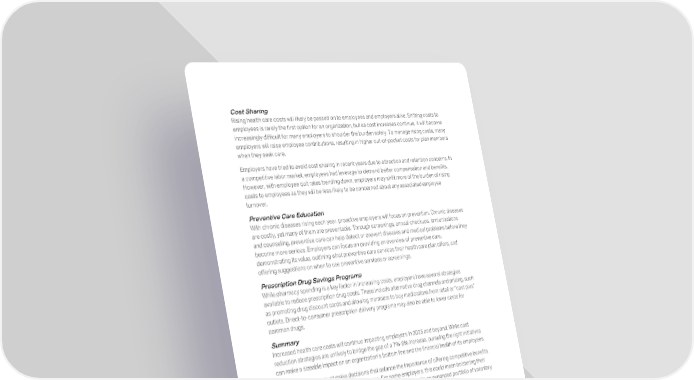 Cost Sharing Rising health care costs will likely be passed on to employees and employers alike. Shifting costs to employees is rarely the first option for an organization, but as cost increases continue, it will become increasingly difficult for many employers to shoulder the burden solely. To manage rising costs, many employers will raise employee contributions, resulting in higher out-of-pocket costs for plan members when they seek care. Employers have tried to avoid cost sharing in recent years due to attraction and retention concerns. In a competitive labor market, employees had leverage to demand better compensation and benefits. However, with employee quit rates trending down, employers may shift more of the burden of rising costs to employees as they will be less likely to be concerned about any associated employee turnover. Preventive Care Education With chronic diseases rising each year, proactive employers will focus on prevention. Chronic diseases are costly, yet many of them are preventable. Through screenings, annual checkups, immunizations and counseling, preventive care can help detect or prevent diseases and medical problems before they become more serious. Employers can focus on providing an overview of preventive care, demonstrating its value, outlining what preventive care services their health care plan offers, and offering suggestions on when to use preventive services or screenings. Prescription Drug Savings Programs While pharmacy spending is a key factor in increasing costs, employers have several strategies available to reduce prescription drug costs. These include alternative drug channels and pricing, such as promoting drug discount cards and allowing members to buy medications from retail or “cost plus” outlets. Direct-to-consumer prescription delivery programs may also be able to lower costs for common drugs. Summary Increased health care costs will continue impacting employers in 2025 and beyond. While cost reduction strategies are unlikely to bridge the gap of a 7%-8% increase, pursuing the right initiatives can make a sizeable impact on an organization’s bottom line and the financial health of its employees. In 2025, employers must make decisions that balance the importance of offering competitive benefits with the realities of significant cost increases. For some employers, this could mean bolstering their health care offerings; others may supplement health insurance with an expanded portfolio of voluntary benefits, such as critical illness or hospital indemnity insurance. Rising health care costs may be unavoidable, but informed employers who enact proactive cost- reduction strategies will be better prepared for the changing health care landscape in 2025. 8