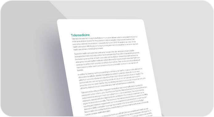 Telemedicine Telemedicine uses technology to facilitate communication between a doctor and a patient who are not in the same physical location for the purpose of medical evaluation, diagnosis and treatment. Not surprisingly, telemedicine exploded in popularity during the COVID-19 pandemic as a safe, remote health care option. With its popularity staying strong, telemedicine is expected to remain an important health care delivery method going forward. Faced with health care costs that continue to rise year after year, employers should consider leveraging telemedicine to help control health care spending. Prescription drug spending is currently the fastest-growing driver of health care costs, but the utilization of expensive health services like emergency care and inpatient visits also adds to the cost. Employers should review their health plan coverage to confirm that it provides benefits for telemedicine. They can also educate employees on how to become better health care consumers by using telemedicine where it is appropriate and feasible. In addition to lowering health care spending by minimizing the need for in-person visits, telemedicine offers other benefits for patients. For example, by connecting remotely, telemedicine can reach patients in rural and underserved areas where there might not be an available doctor or hospital. This can translate into cost savings by helping patients who would not normally seek routine care or preventive services remain healthy. Also, by allowing employees to access care more conveniently and efficiently, telemedicine can reduce time away from work and increase productivity. Telemedicine benefits are often integrated into employer-sponsored health plans. In general, to comply with certain reforms under the Affordable Care Act, telemedicine benefits must be offered as a component of an employer’s health plan rather than on a stand-alone basis. This means that only employees, spouses and other dependents who participate in the employer’s health plan can be eligible for telemedicine benefits. This also means that telemedicine benefits are subject to the ERISA reporting and disclosure requirements, such as the requirement to be described in a summary plan description (SPD); continuation coverage requirements of the Consolidated Omnibus Budget Reconciliation Act; and the Health Insurance Portability and Accountability Act’s privacy and security rules for personal health information. Employers that offer high deductible health plans (HDHPs) that are compatible with health savings accounts (HSAs) should consider how telemedicine benefits may impact employees’ HSA eligibility. To be eligible for HSA contributions, individuals cannot be covered by a health plan that provides benefits, except preventive care benefits, before the minimum HDHP deductible is satisfied for the year. For plan years beginning in 2025, the minimum HDHP deductible is $1,600 for self-only coverage and $3,300 for family coverage. Generally, individuals who are covered by telemedicine programs that provide free or reduced-cost medical benefits are not eligible for HSA contributions. A pandemic-related relief measure temporarily allowed employers with HDHPs to provide benefits for telehealth services before plan deductibles were met. This relief became effective in 2020 and has been repeatedly extended. It currently applies to plan years beginning before Jan. 1, 2025. Absent further legislation to extend the telehealth relief, starting in 2025, providing telemedicine benefits other than just preventive care at no cost (or low cost) to participants will make them ineligible for HSA contributions. There has been bipartisan support to extend telemedicine relief for HDHPs either permanently or temporarily; however, Congress failed to extend this relief at the end of 2024. It remains to be seen if Congress will revive this relief in 2025. 11