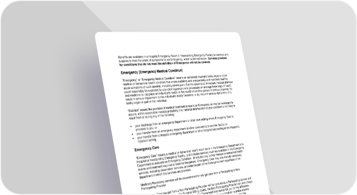 44 Benefits are available in a Hospital Emergency Room or freestanding Emergency Facility for services and supplies to treat the onset of symptoms for an Emergency, which is defined below. Services provided for conditions that do not meet the definition of Emergency will not be covered. Emergency (Emergency Medical Condition) “Emergency” or “Emergency Medical Condition” means an accidental traumatic bodily injury or other medical or behavioral health condition that arises suddenly and unexpectedly and manifests itself by acute symptoms of such severity, including severe pain, that the absence of immediate medical attention could reasonably be expected by a prudent layperson who possesses an average knowledge of health and medicine to: (a) place an individual's health or the health of another person in serious jeopardy; (b) result in serious impairment to the individual's bodily functions; or (c) result in serious dysfunction of a bodily organ or part of the individual. “Stabilize” means the provision of medical treatment to you in an Emergency as may be necessary to assure, within reasonable medical probability that material deterioration of your condition is not likely to result from or during any of the following: • your discharge from an emergency department or other care setting where Emergency Care is provided to you; or • your transfer from an emergency department or other care setting to another facility; or • your transfer from a Hospital emergency department or other Hospital care setting to the Hospital's Inpatient setting. Emergency Care “Emergency Care” means a medical or behavioral health exam done in the Emergency Department of a Hospital or freestanding Emergency Facility, and includes services routinely available in the Emergency Department to evaluate an Emergency Condition. It includes any further medical or behavioral health exams and treatment required to stabilize the patient. Emergency Care may also include necessary services, including observation services, provided as part of the Emergency visit regardless of the department in which the services are provided. Medically Necessary services will be covered whether you get care from a Participating or Non- Participating Provider. Emergency Care you get from a Non-Participating Provider will be covered as a Participating service and will not require Precertification. For Surprise Billing claims, the Non-Participating Provider can only charge you any applicable Deductible, Coinsurance, and/or Copayment and cannot bill you for the difference between the Maximum Allowed Amount and their billed charges until your condition is stable and the Non-Participating Provider has complied with the notice and consent process as described in the “Consolidated Appropriations Act of 2021 Notice” at the front of this Booklet. Your cost shares will be based on the Recognized Amount and will be applied to your Participating Deductible and Out-of-Pocket Limit. The Maximum Allowed Amount for Emergency Care from a Non-Participating Provider will be determined using the median Plan Participating contract rate we pay Participating Providers for the geographic area where the service is provided for the same or similar services. If you are admitted to the Hospital from the Emergency Room, be sure that you or your Doctor calls the Claims Administrator as soon as you are stabilized. The Claims Administrator will review your care to decide if a Hospital stay is needed an d how many days you should stay. See “Getting Approval for Benefits” for more details.