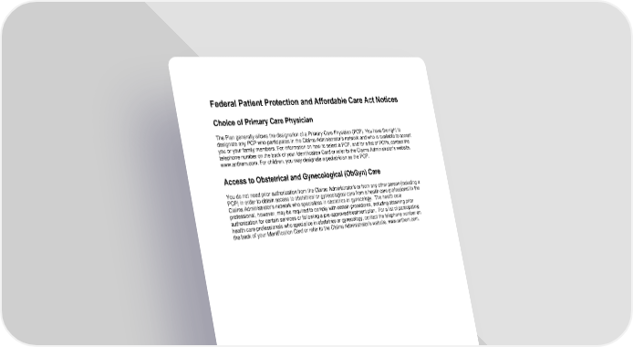 4 Federal Patient Protection and Affordable Care Act Notices Choice of Primary Care Physician The Plan generally allows the designation of a Primary Care Physician (PCP). You have the right to designate any PCP who participates in the Claims Administrator’s network and who is available to accept you or your family members. For information on how to select a PCP, and for a list of PCPs, contact the telephone number on the back of your Identification Card or refer to the Claims Administrator’s website, www.anthem.com. For children, you may designate a pediatrician as the PCP. Access to Obstetrical and Gynecological (ObGyn) Care You do not need prior authorization from the Claims Administrator’s or from any other person (including a PCP) in order to obtain access to obstetrical or gynecological care from a health care professional in the Claims Administrator’s network who specializes in obstetrics or gynecology. The health care professional, however, may be required to comply with certain procedures, including obtaining prior authorization for certain services or following a pre-approved treatment plan. For a list of participating health care professionals who specialize in obstetrics or gynecology, contact the telephone number on the back of your Identification Card or refer to the Claims Administrator’s website, www.anthem.com.