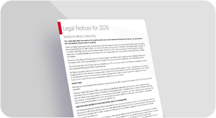 Page 4 | Richmond Community Schools| Plan Year 2026 This Compliance Overview is not intended to be exhaustive nor should any discussion or opinions be construed as legal advice. Readers should contact legal counsel for legal advice. Legal Notices for 2026 NOTICE OF PRIVACY PRACTICES: This notice described how medical information about you may be used and disclosed and how you can get access to this information. Please review it carefully. Certain employer-sponsored health plans are required by the privacy regulations issued under the Health Insurance Portability and Accountability Act of 1996 (“HIPAA”) to maintain the privacy of your health information that the plan creates, requests, or is created on the Plan’s behalf, called Protected Health Information (“PHI”) and to provide you, as the participant, covered dependent, or qualified beneficiary, with notice of the plan’s legal duties and privacy practices concerning Protected Health Information. The terms of this Notice of Privacy Practices (“Notice”) apply to the following plans (collective and individually referenced in this Notice as the “Plan”): Group Medical and Prescription Drug Plans, Voluntary Dental Plans, and Voluntary Vision Plan This Notice describes how the Plan may use and disclose your PHI to carry-out payment and health care operations, and for other purposes that are permitted or required by law. The Plan is required to abide by the terms of this Notice so long as the Plan remains in effect. The Plan Reserves the right to change the terms of this Notice as necessary and to make the new Notice effective for all PHI maintained by the Plan. Copies of revised Notices in which there has been a material change will be mailed to all participants then covered by the Plan. Copies of our current Notices may be obtained by calling the plan administrator. DEFINITIONS Plan Sponsor means Employer Entity defined on page one and any other employer that maintains the Plan for the benefit of its associates. Protected health Information (“PHI”) means individually identifiable health information, which is defined under the law as information that is a subset of health information, including demographic information, that is created or received by the Plan and that relates to your past, present or future physical mental health or condition; the health care services you receive, or the past, present, or future payment for health care services you receive; and that identifies you, or which there is a reasonable basis to believe the information can be used to identify you. USES AND DISCLOSURES OF YOUR PROTECTED HEALTH INFORMATION The following categories describe different ways that the Plan may use and disclose your PHI. For each category of uses and disclosures we will explain what we mean and, when appropriate, provide examples for illustrative purposes. Not every use or disclosure in a category will be listed. However, all the ways we are permitted or required to use and disclose PHI will fall within one of the categories. Your Authorization – Except as outlined below or otherwise permitted by law, the Plan will not use or disclose your PHI unless you have signed a form authorizing the Plan to use or disclose specific PHI for an explicit purpose to a specific person or group of persons. Uses and disclosures of your PHI for marketing purposes and/or for the sale of your PHI require your authorization. You have the right to revoke any authorization in writing except to the extent that the Plan has taken action in reliance upon the authorizations. Uses and Disclosures for Payment – The Plan may use and disclose your PHI as necessary for benefit payment purposes without obtaining an authorization from you. The persons to whom the Plan may disclose your PHI for payment purposes include your health care providers that are billing for or requesting a prior authorization for their services and treatments of you, other health plans providing benefits to you, and your approved family member or guardian responsible for amounts, such as deductibles and co-insurance, not covered by the Plan. For example, the Plan may use or disclose your PHI, including information about any medical procedures and treatments you have received, are receiving, or will receive, to your doctor, your spouse’s doctor or other health plan under which you are covered, and your spouse or other family members, unless you object, in order to process your benefits under the Plan. Examples of other payment activities include determinations of your eligibility or coverage under the Plan, annual premium calculations based on health status and demographic characteristics of persons covered under the Plan, billing, claims management, reinsurance claim, and review of health care services with respect to medical necessity, utilization review activities, and disclosures to consumer reporting agencies.