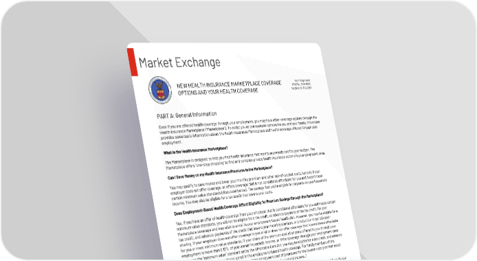 Page 25 Huntington County Community Schools | 2026 Plan Year This Compliance Overview is not intended to be exhaustive nor should any discussion or opinions be construed as legal advice. Readers should contact legal counsel for legal advice. Market Exchange PART A: General Information Even if you are offered health coverage through your employment, you may have other coverage options through the Health Insurance Marketplace (“Marketplace”). To assist you as you evaluate options for you and your family, this notice provides some basic information about the Health Insurance Marketplace and health coverage offered through your employment. What is the Health Insurance Marketplace? The Marketplace is designed to help you find health insurance that meets your needs and fits your budget. The Marketplace offers "one-stop shopping" to find and compare private health insurance options in your geographic area. Can I Save Money on my Health Insurance Premiums in the Marketplace? You may qualify to save money and lower your monthly premium and other out-of-pocket costs, but only if your employer does not offer coverage, or offers coverage that is not considered affordable for you and doesn’t meet certain minimum value standards (discussed below). The savings that you're eligible for depends on your household income. You may also be eligible for a tax credit that lowers your costs. Does Employment-Based Health Coverage Affect Eligibility for Premium Savings through the Marketplace? Yes. If you have an offer of health coverage from your employer that is considered affordable for you and meets certain minimum value standards, you will not be eligible for a tax credit, or advance payment of the tax credit, for your Marketplace coverage and may wish to enroll in your employment-based health plan. However, you may be eligible for a tax credit, and advance payments of the credit that lowers your monthly premium, or a reduction in certain cost- sharing, if your employer does not offer coverage to you at all or does not offer coverage that is considered affordable for you or meet minimum value standards. If your share of the premium cost of all plans offered to you through your employment is more than 9.12% of your annual household income, or if the coverage through your employment does not meet the "minimum value" standard set by the Affordable Care Act, you may be eligible for a tax credit, and advance payment of the credit, if you do not enroll in the employment-based health coverage. For family members of the employee, coverage is considered affordable if the employee’s cost of premiums for the lowest-cost plan that would cover all family members does not exceed 9.12% of the employee’s household income..1 Note: If you purchase a health plan through the Marketplace instead of accepting health coverage offered through your employment, then you may lose access to whatever the employer contributes to the employment-based coverage. Also, this employer contribution -as well as your employee contribution to employment-based coverage- is generally excluded from income for federal and state income tax purposes. Your payments for coverage through the Marketplace are made on an after-tax basis. In addition, note that if the health coverage offered through your employment does not meet the affordability or minimum value standards, but you accept that coverage anyway, you will not be eligible for a tax credit. You should consider all of these factors in determining whether to purchase a health plan through the Marketplace. Indexed annually; see https://www.irs.gov/pub/irs-drop/rp-22-34.pdf for 2023. An employer-sponsored or other employment-based health plan meets the "minimum value standard" if the plan's share of the total allowed benefit costs covered by the plan is no less than 60 percent of such costs. For purposes of eligibility for the premium tax credit, to meet the “minimum value standard,” the health plan must also provide substantial coverage of both inpatient hospital services and physician services. NEW HEALTH INSURANCE MARKETPLACE COVERAGE OPTIONS AND YOUR HEALTH COVERAGE Form Approved OMB No. 1210-0149 (expires 12-31-2026)