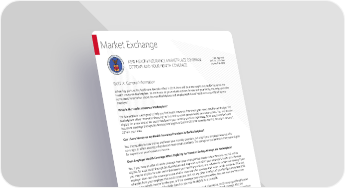 Page 27 | Goshen Community Schools Plan Year 2026 Open Enrollment This Compliance Overview is not intended to be exhaustive nor should any discussion or opinions be construed as legal advice. Readers should contact legal counsel for legal advice. Market Exchange PART A: General Information When key parts of the healthcare law take effect in 2014, there will be a new way to buy health insurance: the Health Insurance Marketplace. To assist you as you evaluate options for you and your family, this notice provides some basic information about the new Marketplace and employment–based health coverage offered by your employer. What is the Health Insurance Marketplace? The Marketplace is designed to help you find health insurance that meets your needs and fits your budget. The Marketplace offers "one–stop shopping" to find and compare private health insurance options. You may also be eligible for a new kind of tax credit that lowers your monthly premium right away. Open enrollment for health insurance coverage through the Marketplace begins in October 2013 for coverage starting as early as January 1, 2014 in your area. Can I Save Money on my Health Insurance Premiums in the Marketplace? You may qualify to save money and lower your monthly premium, but only if your employer does not offer coverage, or offers coverage that doesn't meet certain standards. The savings on your premium that you're eligible for depends on your household income.. Does Employer Health Coverage Affect Eligibility for Premium Savings through the Marketplace? Yes. If you have an offer of health coverage from your employer that meets certain standards, you will not be eligible for a tax credit through the Marketplace and may wish to enroll in your employer's health plan. However, you may be eligible for a tax credit that lowers your monthly premium, or a reduction in certain cost–sharing if your employer does not offer coverage to you at all or does not offer coverage that meets certain standards. If the cost of a plan from your employer that would cover you (and not any other members of your family) is more than 9.5% of your household income for the year, or if the coverage your employer provides does not meet the "minimum value" standard set by the Affordable Care Act, you may be eligible for a tax credit. Note: If you purchase a health plan through the Marketplace instead of accepting health coverage offered by your employer, then you may lose the employer contribution (if any) to the employer–offered coverage. Also, this employer contribution, as well as your employee contribution to employer–offered coverage, is often excluded from income for Federal and State income tax purposes. Your payments for coverage through the Marketplace are made on an after–tax basis. How Can I Get More Information? For more information about your coverage offered by your employer, please check your summary plan description or contact Aaron Manning at 574-533-8631 ext. 12022 or amanning@goshenschools.org The Marketplace can help you evaluate your coverage options, including your eligibility for coverage through the Marketplace and its cost. Please visit HealthCare.gov for more information, including an online application for health insurance coverage and contact information for a Health Insurance Marketplace in your area. NEW HEALTH INSURANCE MARKETPLACE COVERAGE OPTIONS AND YOUR HEALTH COVERAGE Form Approved OMB No. 1210-0149 (expires 6-30-2023)