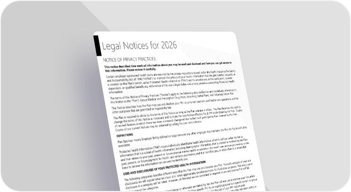 Page 4 | DePauw University | Plan Year 2026 This Compliance Overview is not intended to be exhaustive nor should any discussion or opinions be construed as legal advice. Readers should contact legal counsel for legal advice. Legal Notices for 2026 NOTICE OF PRIVACY PRACTICES: This notice described how medical information about you may be used and disclosed and how you can get access to this information. Please review it carefully. Certain employer-sponsored health plans are required by the privacy regulations issued under the Health Insurance Portability and Accountability Act of 1996 (“HIPAA”) to maintain the privacy of your health information that the plan creates, requests, or is created on the Plan’s behalf, called Protected Health Information (“PHI”) and to provide you, as the participant, covered dependent, or qualified beneficiary, with notice of the plan’s legal duties and privacy practices concerning Protected Health Information. The terms of this Notice of Privacy Practices (“Notice”) apply to the following plans (collective and individually referenced in this Notice as the “Plan”): Group Medical and Prescription Drug Plans, Voluntary Dental Plans, and Voluntary Vision Plan This Notice describes how the Plan may use and disclose your PHI to carry-out payment and health care operations, and for other purposes that are permitted or required by law. The Plan is required to abide by the terms of this Notice so long as the Plan remains in effect. The Plan Reserves the right to change the terms of this Notice as necessary and to make the new Notice effective for all PHI maintained by the Plan. Copies of revised Notices in which there has been a material change will be mailed to all participants then covered by the Plan. Copies of our current Notices may be obtained by calling the plan administrator. DEFINITIONS Plan Sponsor means Employer Entity defined on page one and any other employer that maintains the Plan for the benefit of its associates. Protected health Information (“PHI”) means individually identifiable health information, which is defined under the law as information that is a subset of health information, including demographic information, that is created or received by the Plan and that relates to your past, present or future physical mental health or condition; the health care services you receive, or the past, present, or future payment for health care services you receive; and that identifies you, or which there is a reasonable basis to believe the information can be used to identify you. USES AND DISCLOSURES OF YOUR PROTECTED HEALTH INFORMATION The following categories describe different ways that the Plan may use and disclose your PHI. For each category of uses and disclosures we will explain what we mean and, when appropriate, provide examples for illustrative purposes. Not every use or disclosure in a category will be listed. However, all the ways we are permitted or required to use and disclose PHI will fall within one of the categories. Your Authorization – Except as outlined below or otherwise permitted by law, the Plan will not use or disclose your PHI unless you have signed a form authorizing the Plan to use or disclose specific PHI for an explicit purpose to a specific person or group of persons. Uses and disclosures of your PHI for marketing purposes and/or for the sale of your PHI require your authorization. You have the right to revoke any authorization in writing except to the extent that the Plan has taken action in reliance upon the authorizations. Uses and Disclosures for Payment – The Plan may use and disclose your PHI as necessary for benefit payment purposes without obtaining an authorization from you. The persons to whom the Plan may disclose your PHI for payment purposes include your health care providers that are billing for or requesting a prior authorization for their services and treatments of you, other health plans providing benefits to you, and your approved family member or guardian responsible for amounts, such as deductibles and co-insurance, not covered by the Plan. For example, the Plan may use or disclose your PHI, including information about any medical procedures and treatments you have received, are receiving, or will receive, to your doctor, your spouse’s doctor or other health plan under which you are covered, and your spouse or other family members, unless you object, in order to process your benefits under the Plan. Examples of other payment activities include determinations of your eligibility or coverage under the Plan, annual premium calculations based on health status and demographic characteristics of persons covered under the Plan, billing, claims management, reinsurance claim, and review of health care services with respect to medical necessity, utilization review activities, and disclosures to consumer reporting agencies.