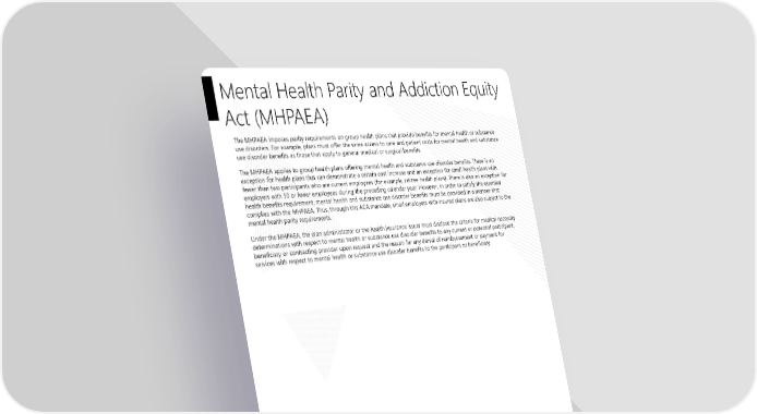 Page 16 | DePauw University | Plan Year 2026 This Compliance Overview is not intended to be exhaustive nor should any discussion or opinions be construed as legal advice. Readers should contact legal counsel for legal advice. Mental Health Parity and Addiction Equity Act (MHPAEA) The MHPAEA imposes parity requirements on group health plans that provide benefits for mental health or substance use disorders. For example, plans must offer the same access to care and patient costs for mental health and substance use disorder benefits as those that apply to general medical or surgical benefits. The MHPAEA applies to group health plans offering mental health and substance use disorder benefits. There is an exception for health plans that can demonstrate a certain cost increase and an exception for small health plans with fewer than two participants who are current employees (for example, retiree health plans). There is also an exception for employers with 50 or fewer employees during the preceding calendar year. However, in order to satisfy the essential health benefits requirement, mental health and substance use disorder benefits must be provided in a manner that complies with the MHPAEA. Thus, through this ACA mandate, small employers with insured plans are also subject to the mental health parity requirements. Under the MHPAEA, the plan administrator or the health insurance issuer must disclose the criteria for medical necessity determinations with respect to mental health or substance use disorder benefits to any current or potential participant, beneficiary or contracting provider upon request and the reason for any denial of reimbursement or payment for services with respect to mental health or substance use disorder benefits to the participant or beneficiary.