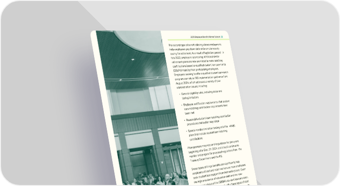 2026 Employee Benefits Market Outlook 23 The second type of benefit offering allows employers to help employees pay down debt while simultaneously saving for retirement. As a result of legislation passed in late 2022, employers sponsoring 401(k) and similar retirement plans are now permitted to make matching contributions based on qualified student loan pay-ments (QSLPs) made by their participating employees. Employers seeking to offer a qualified student loan match program can rely on IRS implementation guid-ance from August 2024, which addresses a variety of plan administration issues, including: General eligibility rules, including dollar and timing limitations Employee certification requirements that student loan matching contribution requirements have been met Reasonable student loan matching contribution procedures that a plan may adopt Special nondiscrimination testing relief for 401(k) plans that include student loan matching contributions Plan sponsors may rely on this guidance for plan years beginning after Dec. 31, 2024, and should continue to monitor and prepare for proposed regulations from the Treasury Department and the IRS. These types of fringe benefits can significantly help employers attract and retain workers as more employees seek student loan support from their work-places. Given the high prevalence of education debt and the now- permanent status of the OBBBAs stu-dent loan provision, employers who do not currently offer these types of debt relief programs may want to consider establishing one. By proactively offering stu-dent loan support, employers can show employees they are valued and provide them with much-needed financial assistance and support, which may increase employee productivity, engagement and happiness. Implementation of these programs should always be done in consultation with benefits counsel to ensure compliance with documentation, nondiscrimination and other IRS requirements.