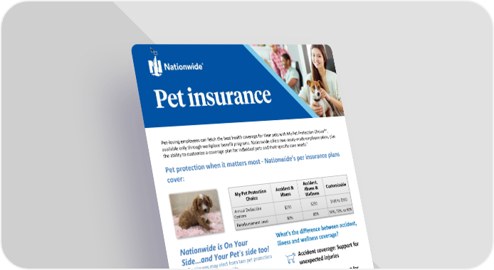 Page 12 | Inotiv | Plan Year 2026 This booklet provides only a summary of your benefits. All services described within are subject to the definitions, limitations, and exclusions set forth in each insurance carrier or provider’s contract. 1Starting on 9/1/23 new members can select the My Pet Protection® Wellness500 coverage option, with the earliest effective date of 10/1/23 and forward. Existing members can add My Pet Protection® Wellness500 during their respective renewal period only. Pet insurance from Nationwide® Enroll online ANYTIME at https://benefits.petinsurance.com/inotiv or call: 877-738-7874 What’s the difference between accident, illness and wellness coverage? Accident coverage: Support for unexpected injuries Illness coverage: Support for when pet gets sick Wellness coverage: Support for proactive care Pet-loving employees can fetch the best health coverage for their pets with My Pet Protection ChoiceSM, available only through workplace benefit programs. Nationwide offers two ready-made employee plans, plus the ability to customize a coverage plan for individual pets and their specific care needs.¹ Pet protection when it matters most - Nationwide’s per insurance plans cover: My Pet Protection Choice Accident & Illness Accident, Illness & Wellness Customizable Annual Deductible Options $250 $250 $100 to $500 Reimbursement Level 80% 80% 50%, 70%, or 80% Nationwide is On Your Side…and Your Pet’s side too! • Employees may elect from two pet protection plans through Nationwide. • If you enroll by the 15th of the month, the effective date will be the 1st of the next month. • Enroll your pet when they are healthy. • Exotic pets can be enrolled, except horses and livestock. • Plan includes 24/7 vet helpline. • Remember: You can use any vet, anywhere! No networks, no pre-approvals, and you receive preferred pricing as an Inotiv employee.
