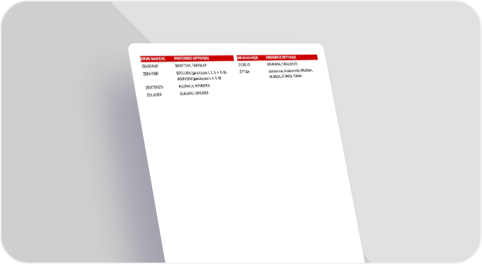 10 DRUG NAME(S) PREFERRED OPTION(S) ZELBORAF BRAFTOVI, TAFINLAR ZEPATIER EPCLUSA (genotypes 1, 2, 3, 4, 5, 6), HARVONI (genotypes 1, 4, 5, 6) ZIEXTENZO FULPHILA, NYVEPRIA ZOLADEX ELIGARD, ORILISSA DRUG NAME(S) PREFERRED OPTION(S) ZYDELIG BRUKINSA, CALQUENCE ZYTIGA abiraterone, bicalutamide, ERLEADA, NUBEQA, XTANDI, YONSA