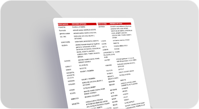 8 DRUG NAME(S) PREFERRED OPTION(S) FYLNETRA FULPHILA, NYVEPRIA Fyremadel cetrorelix acetate, GANIRELIX ACETATE ganirelix acetate cetrorelix acetate, GANIRELIX ACETATE GEL-ONE DUROLANE, EUFLEXXA, GELSYN-3, ORTHOVISC GENOTROPIN HUMATROPE, NORDITROPIN, SOGROYA GILENYA dimethyl fumarate delayed-rel, fingolimod, glatiramer, teriflunomide, AVONEX, BAFIERTAM, BETASERON, COPAXONE 40 MG/ML, KESIMPTA, MAYZENT, OCREVUS, REBIF, TYSABRI, VUMERITY, ZEPOSIA GLEEVEC dasatinib, imatinib mesylate, nilotinib, BOSULIF, SCEMBLIX GONAL-F FOLLISTIM AQ GRANIX NIVESTYM HERCEPTIN, HERCEPTIN HYLECTA KANJINTI, TRAZIMERA HERZUMA KANJINTI, TRAZIMERA HYALGAN DUROLANE, EUFLEXXA, GELSYN-3, ORTHOVISC HYQVIA CUTAQUIG, XEMBIFY ICLUSIG dasatinib, imatinib mesylate, nilotinib, BOSULIF, SCEMBLIX IMBRUVICA INFLECTRA BRUKINSA, CALQUENCE AVSOLA, ILUMYA, PYZCHIVA INTRAVENOUS, REMICADE, SIMPONI ARIA, SKYRIZI INTRAVENOUS, STELARA INTRAVENOUS, TREMFYA INTRAVENOUS, YESINTEK INTRAVENOUS INTELENCE etravirine IRESSA erlotinib, gefitinib, TAGRISSO IXINITY BENEFIX, REBINYN JADENU deferasirox, deferiprone, deferoxamine JUXTAPID REPATHA JYNARQUE tolvaptan KALETRA TABLET atazanavir, darunavir, lopinavir-ritonavir KITABIS PAK tobramycin inhalation solution KORLYM mifepristone KUVAN sapropterin KYPROLIS bortezomib, NINLARO DRUG NAME(S) PREFERRED OPTION(S) LEMTRADA dimethyl fumarate delayed-rel, fingolimod, glatiramer, teriflunomide, AVONEX, BAFIERTAM, BETASERON, COPAXONE 40 MG/ML, KESIMPTA, MAYZENT, OCREVUS, REBIF, TYSABRI, VUMERITY, ZEPOSIA LETAIRIS ambrisentan, bosentan, OPSUMIT LEUKINE NIVESTYM LILETTA KYLEENA, MIRENA, SKYLA LUCENTIS BYOOVIZ LUPRON DEPOT 7.5 MG, 22.5 MG, 30 MG, 45 MG ELIGARD MAVYRET EPCLUSA (genotypes 1, 2, 3, 4, 5, 6), HARVONI (genotypes 1, 4, 5, 6), VOSEVI MONOVISC DUROLANE, EUFLEXXA, GELSYN-3, ORTHOVISC MULPLETA DOPTELET MYOBLOC DAXXIFY, DYSPORT, XEOMIN NEULASTA, NEULASTA ONPRO FULPHILA, NYVEPRIA NEUPOGEN NIVESTYM NEXAVAR pazopanib, sorafenib, sunitinib, CABOMETYX, INLYTA, LENVIMA NEXTERONE amiodarone NITYR ORFADIN NORTHERA midodrine NORVIR ritonavir NOVAREL PREGNYL NPLATE ALVAIZ, DOPTELET NUCALA LYOPHILIZED POWDER DUPIXENT, FASENRA, NUCALA (except lyophilized powder), TEZSPIRE, XOLAIR NUTROPIN AQ HUMATROPE, NORDITROPIN, SOGROYA OCALIVA IQIRVO OCTAGAM Talk to your doctor OGIVRI KANJINTI, TRAZIMERA OMNITROPE HUMATROPE, NORDITROPIN, SOGROYA ORENCIA INTRAVENOUS AVSOLA, REMICADE, SIMPONI ARIA OVIDREL PREGNYL PEGASYS Talk to your doctor PERJETA PHESGO