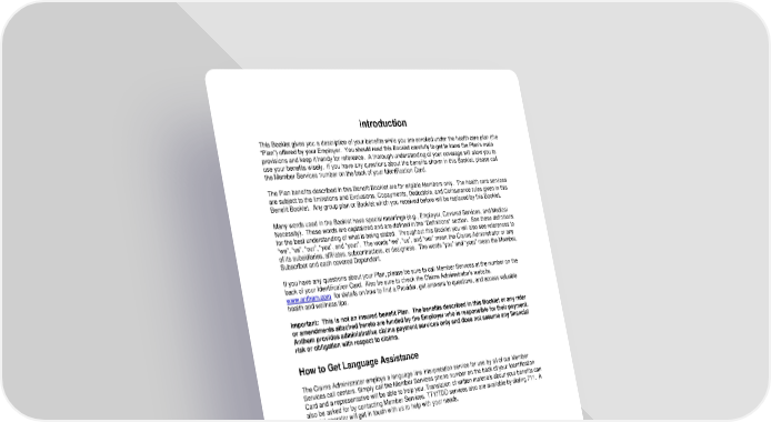 7 Introduction This Booklet gives you a description of your benefits while you are enrolled under the health care plan (the “Plan”) offered by your Employer. You should read this Booklet carefully to get to know the Plan’s main provisions and keep it handy for reference. A thorough understanding of your coverage will allow you to use your benefits wisely. If you have any questions about the benefits shown in this Booklet, please call the Member Services number on the back of your Identification Card. The Plan benefits described in this Benefit Booklet are for eligible Members only. The health care services are subject to the limitations and Exclusions, Copayments, Deductible, and Coinsurance rules given in this Benefit Booklet. Any group plan or Booklet which you received before will be replaced by this Booklet. Many words used in the Booklet have special meanings (e.g., Employer, Covered Services, and Medical Necessity). These words are capitalized and are defined in the "Definitions" section. See these definitions for the best understanding of what is being stated. Throughout this Booklet you will also see references to “we”, “us”, “our”, “you”, and “your”. The words “we”, “us”, and “our” mean the Claims Administrator or any of its subsidiaries, affiliates, subcontractors, or designees. The words “you” and “your” mean the Member, Subscriber and each covered Dependent. If you have any questions about your Plan, please be sure to call Member Services at the number on the back of your Identification Card. Also be sure to check the Claims Administrator’s website, www.anthem.com for details on how to find a Provider, get answers to questions, and access valuable health and wellness tips. Important: This is not an insured benefit Plan. The benefits described in this Booklet or any rider or amendments attached hereto are funded by the Employer who is responsible for their payment. Anthem provides administrative claims payment services only and does not assume any financial risk or obligation with respect to claims. How to Get Language Assistance The Claims Administrator employs a language line interpretation service for use by all of our Member Services call centers. Simply call the Member Services phone number on the back of your Identification Card and a representative will be able to help you. Translation of written materials about your benefits can also be asked for by contacting Member Services. TTY/TDD services also are available by dialing 711. A special operator will get in touch with us to help with your needs.