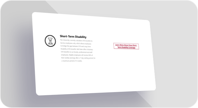 Short-Term Disability The University currently subsidizes STD benefits for Service employees only, which allows employees to bridge the gap between STD and Long-Term Disability (LTD) benefits. Ball State offers Voluntary STD benefits to our faculty, professional and staff employees. Eligible employees will receive 60% of their weekly earnings after a 7-day waiting period, for a maximum period of 12 weeks. Learn More About Voya Short- Term Disability Coverage