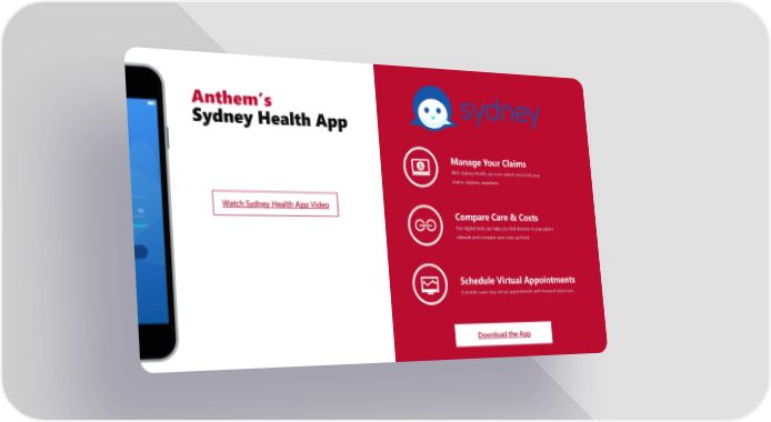 Anthem’s Sydney Health App Manage Your Claims With Sydney Health, you can submit and track your claims, anytime, anywhere. Compare Care & Costs Our digital tools can help you find doctors in your plan’s network and compare care costs up front. Schedule Virtual Appointments Schedule same-day virtual appointments with licensed physicians. Download the App Watch Sydney Health App Video