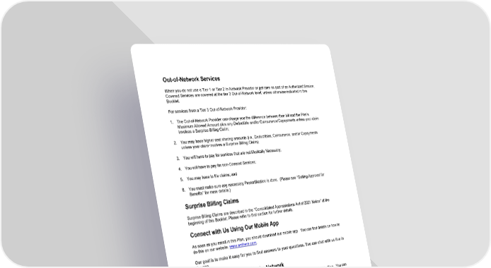 32 Out - of - Network Services When you do not use a Tier 1 or Tier 2 In - Network Provider or get care as part of an Authorized Service, Covered Services are covered at the tier 3 Out - of - Network level, unless otherwise indicated in this Booklet. For services from a Tier 3 Out - of - Network Provider: 1. The Out - of - Network Provider can charge you the difference between their bill and the Plan’s Maximum Allowed Amount plus any Deductible and/or Coinsurance/Copayments unless your claim involves a Surprise Billing Claim; 2. You may have higher cost sharing amounts (i.e., Deductibles, Coinsurance, and/or Copayments unless your claim involves a Surprise Billing Claim); 3. You will have to pay for services that are not Medically Necessary; 4. You will have to pay for non - Covered Services; 5. You may have to file claims; and 6. You must make sure any necessary Precertification is done. (Please see “ Getting Approval for Benefits ” for more details.) Surprise Billing Claims Surprise Billing Claims are described in the “ Consolidated Appropriations Act of 2021 Notice” at the beginning of this Booklet. Please refer to that section for further details. Connect with Us Using Our Mobile App As soon as you enroll in this Plan, you should download our mobile app. You can find details on how to do this on our website, www.anthem.com . Our goal is to make it easy for you to find answers to your questions. You can chat with us live in the app . How to Find a Provider in the Network There are several ways you can find out if a Provider or Facility is in the network for this Plan. You can also find out where they are located and details about their license or training. • See your Plan’s directory of In - Network Providers at www.anthem.com , which lists the Doctors, Providers, and Facilities that participate in this Plan’s network. • Search for a Provider in our mobile app . • Contact Member Services to ask for a list of Doctors and Providers that participate in this Plan’s network, based on specialty and geographic area. Member Services can help you determine the Provider’s name, address, telephone number, professional qualifications, specialty, medical school attended, and board certifications. • Check with your Doctor or Provider. Please note that not all In - Network Providers offer all services. For example, some Hospital - based labs are not part of our Reference Lab Network. In those cases you will have to go to a lab in our Reference