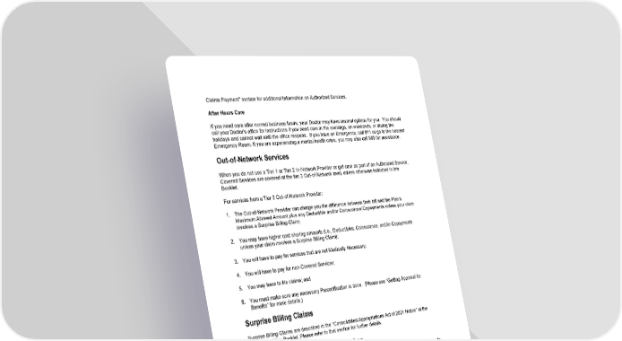 35 Claims Payment” section for additional information on Authorized Services. After Hours Care If you need care after normal business hours, your Doctor may have several options for you. You should call your Doctor’s office for instructions if you need care in the evenings, on weekends, or during the holidays and cannot wait until the office reopens. If you have an Emergency, call 911 or go to the nearest Emergency Room. If you are experiencing a mental health crisis, you may also call 988 for assistance. Out-of-Network Services When you do not use a Tier 1 or Tier 2 In-Network Provider or get care as part of an Authorized Service, Covered Services are covered at the tier 3 Out-of-Network level, unless otherwise indicated in this Booklet. For services from a Tier 3 Out-of-Network Provider: 1. The Out-of-Network Provider can charge you the difference between their bill and the Plan’s Maximum Allowed Amount plus any Deductible and/or Coinsurance/Copayments unless your claim involves a Surprise Billing Claim; 2. You may have higher cost sharing amounts (i.e., Deductibles, Coinsurance, and/or Copayments unless your claim involves a Surprise Billing Claim); 3. You will have to pay for services that are not Medically Necessary; 4. You will have to pay for non-Covered Services; 5. You may have to file claims; and 6. You must make sure any necessary Precertification is done. (Please see “Getting Approval for Benefits” for more details.) Surprise Billing Claims Surprise Billing Claims are described in the “Consolidated Appropriations Act of 2021 Notice” at the beginning of this Booklet. Please refer to that section for further details. Connect with Us Using Our Mobile App As soon as you enroll in this Plan, you should download our mobile app. You can find details on how to do this on our website, www.anthem.com. Our goal is to make it easy for you to find answers to your questions. You can chat with us live in the app. How to Find a Provider in the Network There are several ways you can find out if a Provider or Facility is in the network for this Plan. You can also find out where they are located and details about their license or training. • See your Plan’s directory of In-Network Providers at www.anthem.com, which lists the Doctors, Providers, and Facilities that participate in this Plan’s network. • Search for a Provider in our mobile app.