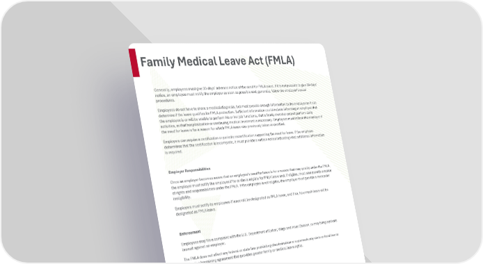 Page 22 | Ball State University | Plan Year 2026 This compliance overview is not intended to be exhaustive nor should any discussion or opinions be construed as legal advice. Readers should contact legal counsel for legal advice. Family Medical Leave Act (FMLA) Generally, employees must give 30-days’ advance notice of the need for FMLA leave. If it is not possible to give 30-days’ notice, an employee must notify the employer as soon as possible and, generally, follow the employer’s usual procedures. Employees do not have to share a medical diagnosis, but must provide enough information to the employer so it can determine if the leave qualifies for FMLA protection. Sufficient information could include informing an employer that the employee is or will be unable to perform his or her job functions, that a family member cannot perform daily activities, or that hospitalization or continuing medical treatment is necessary. Employees must inform the employer if the need for leave is for a reason for which FMLA leave was previously taken or certified. Employers can require a certification or periodic recertification supporting the need for leave. If the employer determines that the certification is incomplete, it must provide a written notice indicating what additional information is required. Employer Responsibilities Once an employer becomes aware that an employee’s need for leave is for a reason that may qualify under the FMLA, the employer must notify the employee if he or she is eligible for FMLA leave and, if eligible, must also provide a notice of rights and responsibilities under the FMLA. If the employee is not eligible, the employer must provide a reason for ineligibility. Employers must notify its employees if leave will be designated as FMLA leave, and if so, how much leave will be designated as FMLA leave. Enforcement Employees may file a complaint with the U.S. Department of Labor, Wage and Hour Division, or may bring a private lawsuit against an employer. The FMLA does not affect any federal or state law prohibiting discrimination or supersede any state or local law or collective bargaining agreement that provides greater family or medical leave rights.
