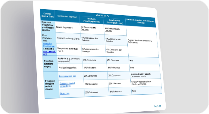 Common What You Will Pay Limitations, Exceptions, & Other Important Medical Event Services You May Need In-network Out-of-network Information (You will pay the least) (You will pay the most) If you need drugs to treat Generic drugs (Tier 1) 0% Coinsurance after 40% Coinsurance after your illness or Deductible Deductible condition. More Preferred brand drugs (Tier 2) 40% Coinsurance after 40% Coinsurance after Pharmacy Benefits are administered by information Deductible Deductible CVS/Caremark. about prescription drug coverage Non-preferred brand drugs 50% Coinsurance after 40% Coinsurance after is available at (Tier 3) Deductible Deductible www.caremark. com. Facility fee (e.g., ambulatory 20% Coinsurance 40% Coinsurance None If you have surgery center) outpatient surgery Physician/surgeon fees 20% Coinsurance 40% Coinsurance None Emergency room care 20% Coinsurance 20% Coinsurance In-network deductible applies to Out-of-network benefits If you need immediate Emergency medical 20% Coinsurance 20% Coinsurance In-network deductible applies to medical transportation Out-of-network benefits attention Urgent care 20% Coinsurance 40% Coinsurance None Page 3 of 8