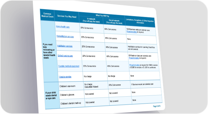 Common What You Will Pay Limitations, Exceptions, & Other Important Medical Event Services You May Need In-network Out-of-network Information (You will pay the least) (You will pay the most) Home health care 20% Coinsurance 40% Coinsurance 100 Maximum visits per calendar year; Preauthorization is required. Rehabilitation services 20% Coinsurance 40% Coinsurance None If you need Habilitation services 20% Coinsurance 40% Coinsurance Habilitation services for Learning Disabilities help are not covered. recovering or have other 60 Maximum days per calendar year; special health Skilled nursing care 20% Coinsurance 40% Coinsurance Preauthorization is required. needs Durable medical equipment 20% Coinsurance 40% Coinsurance Preauthorization is required for DME in excess of $500 for rentals or $1,500 for purchases. Hospice service No charge No charge None Children’s eye exam No charge; 40% Coinsurance 1 Maximum exam per calendar year Deductible Waived If your child needs dental Children’s glasses Not covered Not covered None or eye care Children’s dental check-up Not covered Not covered None Page 5 of 8