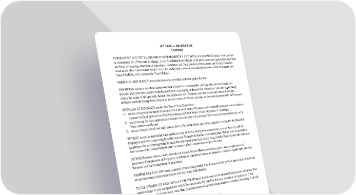 GC 2510.3/3A SECTION 2 - DEFINITIONS (Any Occ) SECTION 2 - DEFINITIONS Continued PERMANENT AND TOTAL DISABILITY/PERMANENTLY AND TOTALLY DISABLED means Your inability as determined by a Physician to engage, due to Accidental Bodily Injury or Sickness in any occupation for which You are fitted by training, education or experience. Permanent and Total Disability/Permanently and Totally Disability must occur after You become insured under the Policy and it must be conclusively determined the Permanent And Total Disability will continue for Your lifetime. PERSONAL INSURANCE means the insurance provided under the policy for You. PHYSICIAN means a qualified, licensed doctor of medicine or osteopathy, and any other licensed health care provider that state law requires to be licensed prior to engaging in the practice of medicine and who is, practicing within the scope of his specialty, license, and applicable law. Physician does not include any medical provider affiliated with the Group Policyholder, or anyone related by blood, marriage, or domestic partnership to an Employee. REGULAR ATTENDANCE means that You or Your Dependent: 1) are receiving periodic medical treatment and services from a Physician when medically required and according to standard medical protocol to effectively manage and treat Your or Your Dependent’s Disability; 2) are receiving the most appropriate treatment and care that will maximize Your medical improvement and aid in Your return to work; and 3) are receiving medical care and services from a Physician whose specialty or practice is related to the Disability. RETIREE means an individual who, on his last day of Active Work prior to retirement, was an Actively at Work Employee and who is receiving benefits under the Group Policyholder’s retirement plan. Retiree does not include an Employee who is receiving benefits under his retirement plan solely due to being Totally Disabled and who otherwise does not meet the Group Policyholder’s retirement plan’s criteria for receipt of benefits. SICKNESS means illness, bodily disorder or disease, Mental Illness, normal pregnancy and complications of pregnancy. Complication of Pregnancy is defined as concurrent disease or abnormal conditions significantly affecting the usual medical management of pregnancy. TEMPORARY LAY-OFF means a period of time during which You are not Actively at Work due to lack of work and are not terminated from employment with the Group Policyholder. TOTAL DISABILITY AND TOTALLY DISABLED mean that because of Accidental Bodily Injury or Sickness You cannot engage in any occupation for which You are reasonably fitted by training, education, or experience. If You accept any type of employment, other than in a state-approved rehabilitation program or sheltered workshop, You will be considered fitted to that occupation. WE, OUR, US, and AUL mean American United Life Insurance Company. YOU and YOUR means an Employee who meets the requirements of the Eligibility and Individual Effective Date Sections.