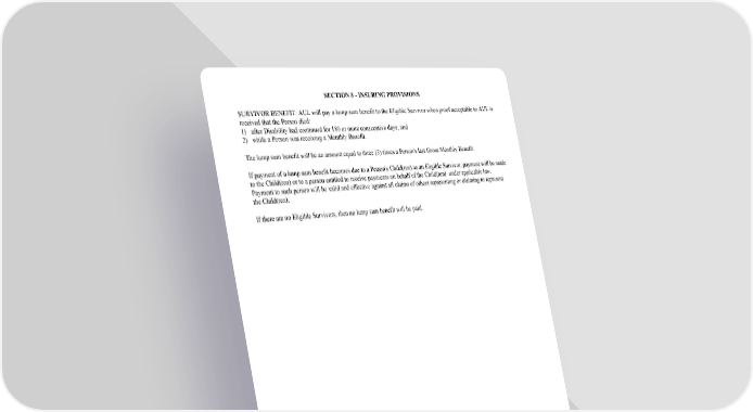 SECTION 8 - INSURING PROVISIONS SURVIVOR BENEFIT: AUL will pay a lump sum benefit to the Eligible Survivor when proof acceptable to AUL is received that the Person died: 1) after Disability had continued for 180 or more consecutive days; and 2) while a Person was receiving a Monthly Benefit. The lump sum benefit will be an amount equal to three (3) times a Person's last Gross Monthly Benefit. If payment of a lump sum benefit becomes due to a Person's Child(ren) as an Eligible Survivor, payment will be made to the Child(ren) or to a person entitled to receive payments on behalf of the Child(ren) under applicable law. Payment to such person will be valid and effective against all claims of others representing or claiming to represent the Child(ren). If there are no Eligible Survivors, then no lump sum benefit will be paid. GC 3100.26A SECTION 8 - INSURING PROVISIONS 2003 (3 Months)