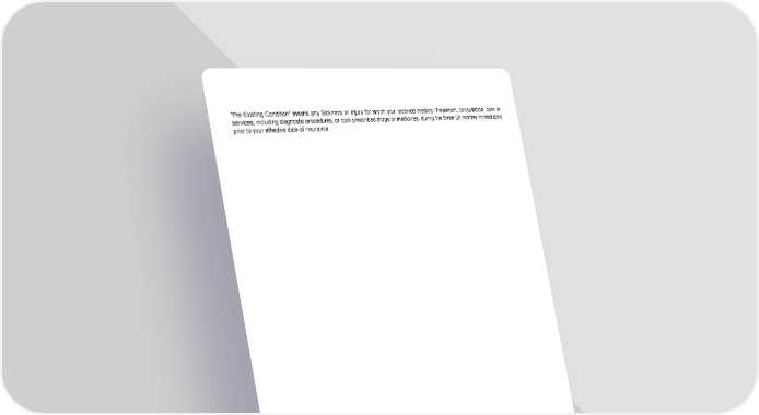 "Pre-Existing Condition" means any Sickness or Injury for which you received medical Treatment, consultation, care or services, including diagnostic procedures, or took prescribed drugs or medicines, during the three (3) months immediately prior to your effective date of insurance. LRS-6570-8-0406 Page 9.1