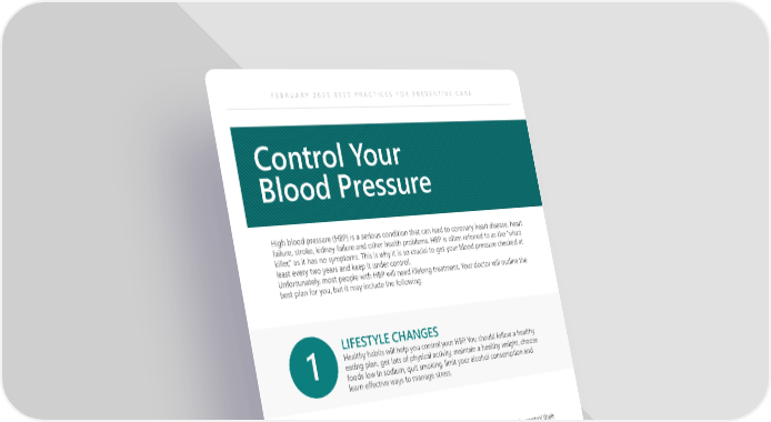 FEBRUARY 2025 BEST PRACTICES FOR PREVENTIVE CARE Control Your Blood Pressure High blood pressure (HBP) is a serious condition that can lead to coronary heart disease, heart failure, stroke, kidney failure and other health problems. HBP is often referred to as the “silent killer,” as it has no symptoms. This is why it is so crucial to get your blood pressure checked at least every two years and keep it under control. Unfortunately, most people with HBP will need lifelong treatment. Your doctor will outline the best plan for you, but it may include the following: LIFESTYLE CHANGES Healthy habits will help you control your HBP. You should follow a healthy eating plan, get lots of physical activity, maintain a healthy weight, choose foods low in sodium, quit smoking, limit your alcohol consumption and learn effective ways to manage stress. MEDICATION Today’s blood pressure medicines can safely help most people control their HBP. The side effects typically tend to be minor. These medications work in different ways; some remove extra fluid and salt from the body, while others slow down the heartbeat or relax and widen blood vessels. Talk with your doctor today about your blood pressure and what you can do to better your health. 401 Pennsylvania Pkwy Suite 200 Office: Indianapolis, IN 46280 Population Health: LHDbenefits.com [email protected]