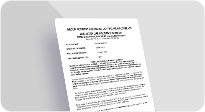 RL-ACC3-CERT2-23-IN 1 D12967 (11/25) GROUP ACCIDENT INSURANCE CERTIFICATE OF COVERAGE RELIASTAR LIFE INSURANCE COMPANY 250 Marquette Avenue, Suite 900, Minneapolis, Minnesota 55401 Claims: 855-730-2902 Customer Service: 877-236-7564 POLICYHOLDER: Noblesville Schools GROUP POLICY NUMBER: 73058-1CAC2 POLICY EFFECTIVE DATE: January 1, 2026 GOVERNING JURISDICTION: Indiana THIS IS LIMITED BENEFIT INDEMNITY COVERAGE Benefits are paid for Covered Accidents as defined in the Certificate. The Policy does not constitute comprehensive health insurance coverage (often referred to as “major medical insurance coverage”). In addition, the Policy does not satisfy the requirement of minimum essential coverage under the Affordable Care Act. Benefits are paid under the Policy for Covered Accidents as indemnity insurance and are not intended to cover medical expenses. ReliaStar Life Insurance Company certifies that we have issued the group Policy listed above to the Policyholder. The Policy is available for you to review if you contact the Policyholder for more information. This is your Certificate as long as you are eligible for coverage and you become insured. Please read it carefully and keep it in a safe place. This Certificate replaces any other Certificates we may have given you for the same level of coverage under the Policy. This Certificate summarizes and explains the parts of the Policy which apply to you. The Certificate is part of the group Policy but by itself is not a policy. Your coverage may be changed under the terms and conditions of the Policy. The Policy is delivered in and is governed by the laws of the governing jurisdiction and to the extent applicable by the Employee Retirement Income Security Act of 1974 (ERISA) and any amendments. For purposes of effective dates and ending dates under the Policy, all days begin at 12:01 a.m. standard time at the Policyholder's address and end at 12:00 midnight standard time at the Policyholder's address. The coverage under the Policy is conditionally renewable according to the terms and provisions of the Policy. In this Certificate, “you” and “your” refer to an Employee who is eligible for coverage under the Policy; “we”, “us” and “our” refer to ReliaStar Life Insurance Company. Exclusions may apply. Please read your Certificate carefully. Signed for ReliaStar Life Insurance Company at its home office in Minneapolis, Minnesota on the Policy effective date. Amelia (Amy) J. Vaillancourt President Melissa A. O'Donnell Secretary