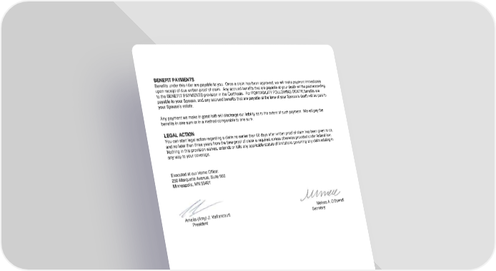 RL-HI2-CHR-18-IN 5 CHR-12970 (11/25) BENEFIT PAYMENTS Benefits under this rider are payable to you. Once a claim has been approved, we will make payment immediately upon receipt of due written proof of claim. Any accrued benefits that are payable at your death will be paid according to the BENEFIT PAYMENTS provision in the Certificate. For PORTABILITY FOLLOWING DEATH, benefits are payable to your Spouse, and any accrued benefits that are payable at the time of your Spouse’s death will be paid to your Spouse’s estate. Any payment we make in good faith will discharge our liability as to the extent of such payment. We will pay the benefits in one sum or in a method comparable to one sum. Amelia (Amy) J. Vaillancourt Melissa A. O'Donnell President Secretary LEGAL ACTION You can start legal action regarding a claim no earlier than 60 days after written proof of claim has been given to us, and no later than three years from the time proof of claim is required, unless otherwise provided under federal law. Nothing in this provision waives, extends or tolls any applicable statute of limitations governing any claim relating in any way to your coverage. Executed at our Home Office: 250 Marquette Avenue, Suite 900 Minneapolis, MN 55401