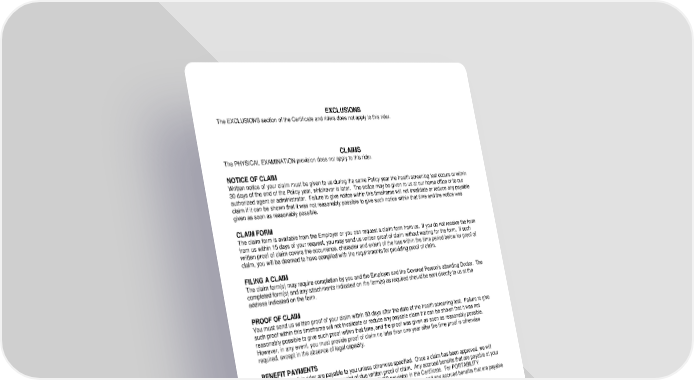 RL-HI2-WELL-18-IN 3 WELL-12970 (11/25) EXCLUSIONS The EXCLUSIONS section of the Certificate and riders does not apply to this rider. CLAIMS The PHYSICAL EXAMINATION provision does not apply to this rider. NOTICE OF CLAIM Written notice of your claim must be given to us during the same Policy year the health screening test occurs or within 30 days of the end of the Policy year, whichever is later. The notice may be given to us at our home office or to our authorized agent or administrator. Failure to give notice within this timeframe will not invalidate or reduce any payable claim if it can be shown that it was not reasonably possible to give such notice within that time and the notice was given as soon as reasonably possible. CLAIM FORM The claim form is available from the Employer or you can request a claim form from us. If you do not receive the form from us within 15 days of your request, you may send us written proof of claim without waiting for the form. If such written proof of claim covers the occurrence, character and extent of the loss within the time period below for proof of claim, you will be deemed to have complied with the requirements for providing proof of claim. FILING A CLAIM The claim form(s) may require completion by you and the Employer and the Covered Person’s attending Doctor. The completed form(s) and any attachments indicated on the form(s) as required should be sent directly to us at the address indicated on the form. PROOF OF CLAIM You must send us written proof of your claim within 90 days after the date of the health screening test. Failure to give such proof within this timeframe will not invalidate or reduce any payable claim if it can be shown that it was not reasonably possible to give such proof within that time, and the proof was given as soon as reasonably possible. However, in any event, you must provide proof of claim no later than one year after the time proof is otherwise required, except in the absence of legal capacity. BENEFIT PAYMENTS Benefits under this rider are payable to you unless otherwise specified. Once a claim has been approved, we will make payment immediately upon receipt of due written proof of claim. Any accrued benefits that are payable at your death will be paid according to the BENEFIT PAYMENTS provision in the Certificate. For PORTABILITY FOLLOWING DEATH OR DIVORCE, benefits are payable to your Spouse, and any accrued benefits that are payable at the time of your Spouse’s death will be paid to your Spouse’s estate. Any payment we make in good faith will discharge our liability as to the extent of such payment. We will pay the benefits in one sum. LEGAL ACTION You can start legal action regarding a claim no earlier than 60 days after written proof of claim has been given to us, and no later than three years from the time proof of claim is required, unless otherwise provided under federal law. Nothing in this provision waives, extends or tolls any applicable statute of limitations governing any claim relating in any way to your coverage.