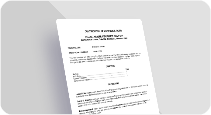 ICC19 RL-STD-CNT-19 1 CNT-12972 (11/25) CONTINUATION OF INSURANCE RIDER RELIASTAR LIFE INSURANCE COMPANY 250 Marquette Avenue, Suite 900, Minneapolis, Minnesota 55401 POLICYHOLDER: Noblesville Schools GROUP POLICY NUMBER: 73058-1STD2 This rider is made a part of the Group Short Term Disability Income Insurance Certificate and is subject to all of the provisions, limitations and exclusions of the Policy and Certificate, unless changed by this rider. Unless expressly changed by this rider, the terms used in this rider have the same meaning as in the Certificate. DEFINITIONS Labor Strike means you are absent from Active Employment for a period of time for which continuation of insurance is available under the Employer’s written plan for labor strikes. Leave of Absence means you are absent from Active Employment for a period of time under a leave granted in advance in writing by the Employer that is in accordance with the Employer’s formal leave policies. Your normal vacation time is not considered a Leave of Absence. Temporary Layoff means you are absent from Active Employment for a period of time that has been agreed to in advance in writing by the Employer. Planned vacations that your Employer has approved in advance are not considered a Temporary Layoff. GENERAL PROVISIONS ELIGIBILITY If you are covered under the Policy, then you are eligible for this rider on the latest of the following: The Policy effective date. The date this rider is available to the eligible class of Employees to which you belong. Your disability income insurance coverage effective date. EFFECTIVE DATE You will be covered at 12:01 a.m. standard time at the Policyholder’s address on the date you are eligible for this rider. CHANGE OF INSURANCE CARRIERS The CHANGE OF INSURANCE CARRIERS provision in the Certificate is revised to include an Employee whose coverage was being continued under a similar continuation provision in the Employer’s Prior Policy on the date the Employer changes insurance carriers to our Policy. CONTENTS Section Page Definitions............................................................................................................... 1 General Provisions................................................................................................. 1 Continuation of Insurance....................................................................................... 2