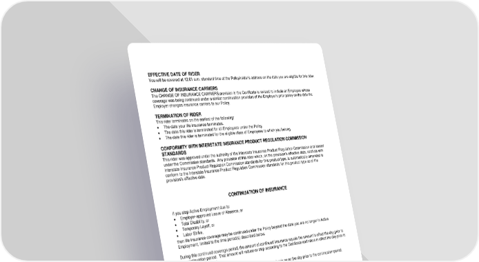 ICC18 LR14GP-CNT-2 2 CNT-12995 (11/25) EFFECTIVE DATE OF RIDER You will be covered at 12:01 a.m. standard time at the Policyholder’s address on the date you are eligible for this rider. CHANGE OF INSURANCE CARRIERS The CHANGE OF INSURANCE CARRIERS provision in the Certificate is revised to include an Employee whose coverage was being continued under a similar continuation provision of the Employer’s prior policy on the date the Employer changes insurance carriers to our Policy. TERMINATION OF RIDER This rider terminates on the earliest of the following: The date your life insurance terminates. The date this rider is terminated for all Employees under the Policy. The date this rider is terminated for the eligible class of Employees to which you belong. CONFORMITY WITH INTERSTATE INSURANCE PRODUCT REGULATION COMMISSION STANDARDS This rider was approved under the authority of the Interstate Insurance Product Regulation Commission and issued under the Commission standards. Any provision of this rider which, on the provision’s effective date, conflicts with Interstate Insurance Product Regulation Commission standards for this product type, is automatically amended to conform to the Interstate Insurance Product Regulation Commission standards for this product type as of the provision’s effective date. CONTINUATION OF INSURANCE If you stop Active Employment due to: then life insurance coverage may be continued under the Policy beyond the date you are no longer in Active Employment, limited to the time period(s) described below. During this continued coverage period, the amount of continued insurance equals the amount in effect the day prior to the continuation period. That amount will reduce or stop according to the Certificate and riders in effect the day prior to the continuation period. Premiums are due during the continuation period on the same basis as on the day prior to the continuation period. Contact the Employer for more information. If an eligible claim occurs while coverage is being continued under this rider, then benefits will be paid as described in the Certificate and riders. FAMILY AND MEDICAL LEAVE If you are on a Leave of Absence as described under the Family and Medical Leave Act of 1993 and any amendments ("FMLA") or applicable state family and medical leave law ("State FML"), and the Employer's human resource policy provides for continuation of life insurance during an FMLA or State FML Leave of Absence, then coverage for all Covered Persons may be continued until the end of the later of: The leave period permitted by FMLA. The leave period permitted by state FML. This continuation of coverage includes all riders that were in effect on the date before the FMLA or State FML Leave of Absence began. Employer-approved Leave of Absence, or Total Disability, or Temporary Layoff, or Labor Strike,