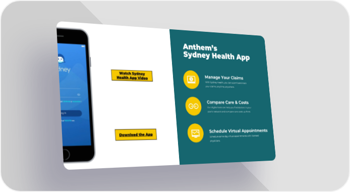 Manage Your Claims With Sydney Health, you can submit and track your claims, anytime, anywhere. Compare Care & Costs Our digital tools can help you find doctors in your plan’s network and compare care costs up front. Schedule Virtual Appointments Schedule same-day virtual appointments with licensed physicians. Download the App Watch Sydney Health App Video Anthem’s Sydney Health App
