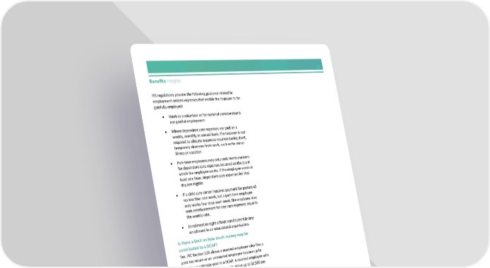 IRS regulations provide the following guidance related to employment-related expenses that enable the taxpayer to be gainfully employed: • Work as a volunteer or for nominal consideration is not gainful employment. • Where dependent care expenses are paid on a weekly, monthly or annual basis, the taxpayer is not required to allocate expenses incurred during short, temporary absences from work, such as for minor illness or vacation. • Part-time employees may only seek reimbursement for dependent care expenses incurred on the day in which the employee works. If the employee works at least one hour, dependent care expenses for that day are eligible. • If a child care center requires payment for periods of no less than one week, but a part-time employee only works four days each week, the employee may seek reimbursement for day care expenses equal to the weekly rate. • Enrollment in night school constitutes full-time enrollment in an educational organization. Is there a limit on how much money may be contributed to a DCAP? Yes. IRC Section 129 allows a married employee who files a joint tax return or an unmarried employee to place up to $5,000 per calendar year in a DCAP. A married employee who files a separate tax return may only place up to $2,500 per calendar year in a DCAP. Additionally, under the dependent care tax credit of IRC Section 21, an employee may also be eligible to deduct eligible dependent care expenses on his or her tax return, provided those expenses were not reimbursed through a DCAP. Contact LHD Benefit Advisors today to learn more about DCAPs.