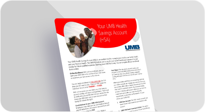 Page 16 | Duncan Supply Company, Inc.| Plan Year 2025 Open Enrollment This booklet provides only a summary of your benefits. All services described within are subject to the definitions, limitations, and exclusions set forth in each insurance carrier or provider’s contract. Your UMB Health Savings Account (HSA) Your UMB Health Savings Account (HSA) is an excellent tool for managing your health, your family’s health, and your financial health. The UMB HSA allows you to pay for your current healthcare expenses or to save money for future qualified expenses. Opening your UMB HSA is easy. You can complete all your enrollment forms online. Online Enrollment: With online enrollment, you can open your UMB HSA in the comfort of your own home or anywhere you have access to the internet. Next Steps: After you enroll, you will receive your account number and debit card(s) in the mail within 5 to 7 business days. You will also receive a separate mailing with your ATM Personal Identification Number (PIN). Contributions to your UMB HSA Account: Employees may make pre-tax contributions through payroll deductions, and anyone can contribute post- tax funds by using the HSA Contribution Form or by selecting “Make a Contribution” to electronically transfer funds from your personal bank account to your UMB HSA through the secure online HSA website. Have Questions? Contact Customer Services at 1-866-520-4HSA (4472) Monday through Friday from 8:00 AM to 8:30 PM EST and Saturday from 9:00 AM to 6:00 PM EST. Or to access your account online visit hsa.umb.com. You can begin enrollment at HSA.UMB.COM (the first time you will need to click, “Open an HSA” under the individual tab and enter THA0001 ~ 141525). With online access you can check your HSA balance, account activity, and recent card purchases. You’ll need to verify who you are the first time you access this site. Have your HSA debit card or your account number handy (it’s shown the right). When your card(s) and PIN(s) are received log back into your online account can manage your account. Once you are enrolled, UMB offers a Deposit Account and the UMB HSA Saver® investment option. You are automatically enrolled in the Deposit Account, where you can elect the investment option after you meet the eligibility requirements, as described on the website. It’s your choice, your UMB HSA! 1. HSA Base Account. This FDIC-insured account pays tiered interest rates based on your balance in the account. 2. UMB HSA Saver Investment Option. This option allows you to invest in various mutual fund offerings. Accessing HSA Funds: You will be able to access your HSA funds by using your health care Visa debit card to pay for qualified medical expenses. If you use another form of payment, you may reimburse yourself from your UMB HSA by logging in to your account and selecting reimbursement tool. This allows you to transfer money out of your HSA and into a personal bank account. IMPORTANT: Keep receipts for all expenses you use your UMB HSA to pay! HELPFUL TIPS: Raise the amount you contribute annually to get to the maximum allowed by the IRS. When possible, pay out-of-pocket to allow money to grow in your HSA.