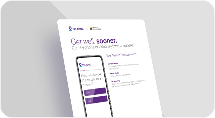 Get well, sooner. * Care by phone or video anytime, anywhere. Your Teladoc Health services: General Medical Talk to a U.S.-licensed doctor for non-emergency conditions 24/7. Mental Health Talk to a therapist 7 days a week. Dermatology Upload images of a skin issue online or on the app and get a custom treatment plan within 24 hours. Get started Visit Teladoc.com Call 1-800-TELADOC (800-835-2362) | Download the app | Refer to your employee booklet at umr.com for Teladoc benefits *Teladoc Health is not available internationally. © Teladoc Health, Inc. 2 Manhattanville Rd. Ste 203, Purchase, NY 10577. All rights reserved. The marks and logos of Teladoc Health and Teladoc Health wholly owned subsidiaries are trademarks of Teladoc Health, Inc. All programs and services are subject to applicable terms and conditions. 10E-211_450438514_03092020 Group ID: 749227