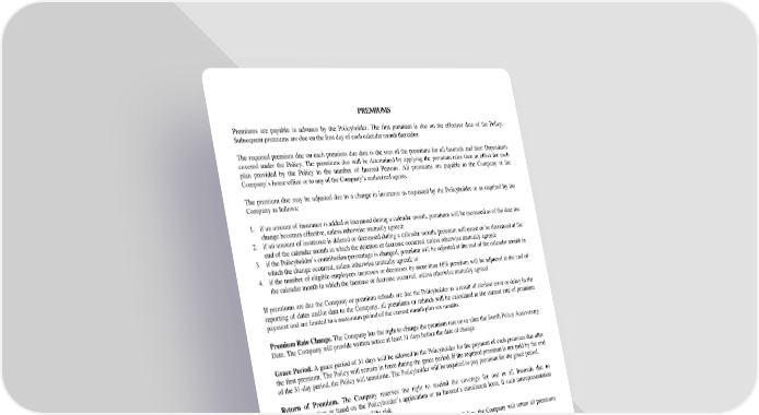 PREMIUMS Premiums are payable in advance by the Policyholder. The first premium is due on the effective date of the Policy. Subsequent premiums are due on the first day of each calendar month thereafter. The required premium due on each premium due date is the sum of the premiums for all Insureds and their Dependents covered under the Policy. The premiums due will be determined by applying the premium rates then in effect for each plan provided by the Policy to the number of Insured Persons. All premiums are payable to the Company at the Company’s home office or to any of the Company’s authorized agents. The premium due may be adjusted due to a change in insurance as requested by the Policyholder or as required by the Company as follows: 1. if an amount of insurance is added or increased during a calendar month, premiums will be increased as of the date the change becomes effective, unless otherwise mutually agreed; 2. if an amount of insurance is deleted or decreased during a calendar month, premium will cease or be decreased at the end of the calendar month in which the deletion or decrease occurred, unless otherwise mutually agreed; 3. if the Policyholder’s contribution percentage is changed, premium will be adjusted at the end of the calendar month in which the change occurred, unless otherwise mutually agreed; or 4. if the number of eligible employees increases or decreases by more than 10% premium will be adjusted at the end of the calendar month in which the increase or decrease occurred, unless otherwise mutually agreed. If premiums are due the Company or premium refunds are due the Policyholder as a result of clerical error or delay in the reporting of dates and/or data to the Company, all premiums or refunds will be calculated at the current rate of premium payment and are limited to a maximum period of the current month plus six months. Premium Rate Change. The Company has the right to change the premium rate on or after the fourth Policy Anniversary Date. The Company will provide written notice at least 31 days before the date of change. Grace Period. A grace period of 31 days will be allowed to the Policyholder for the payment of each premium due after the first premium. The Policy will remain in force during the grace period. If the required premium is not paid by the end of the 31-day period, the Policy will terminate. The Policyholder will be required to pay premium for the grace period. Return of Premium. The Company reserves the right to rescind the coverage for one or all Insureds due to misrepresentation or fraud on the Policyholder’s application or an Insured’s enrollment form, if such misrepresentation materially affected the acceptance of the risk. If, on the date coverage is rescinded, no claims have been paid under the Policy, the Company will return all premiums paid for such coverage to the Policyholder. If, on the date coverage is rescinded, claims have been paid under the Policy, the Company reserves the right to deduct from the premiums to be returned to the Policyholder an amount equal to the amount of such claims paid. TERMINATION OF POLICY The Policyholder or the Company may terminate or cancel the Policy on the earliest of the following: 1. any date on or after the fourth Policy Anniversary Date the Company requests termination. Written notice must be provided to the Policyholder at least 31 days prior to termination; 2. any date on or after the date the Company receives the Policyholder’s written request for termination; 3. the date the number of persons covered under the Policy does not meet the minimum participation requirements of 10; 4. the date the required premium has not been paid, except as provided in the Grace Period provision; or 5. the date 100% of the eligible employees are not covered when a contribution is not required by the employee. M-9184 2