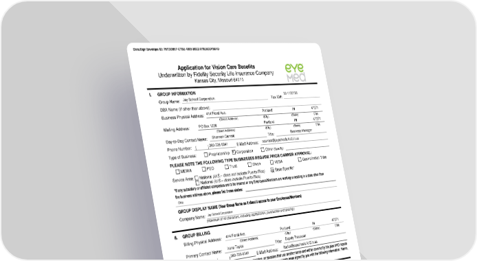 Application for Vision Care Benefits Underwritten by Fidelity Security Life Insurance Company KansasCity, Missouri 64111 I. GROUPINFORMATION Jay School Corporation 35-1100185 GroupName: Tax ID#: DBAName(Ifotherthanabove): Business Physical Address: 414 Floral Ave. Portland IN 47371 (Street Address) (City) (State) (Zip) Mailing Address: POBox1239 Portland IN 47371 (Street Address) (City) (State) (Zip) Day-to-Day Contact Name: ShannonCurrent Title: Business Manager PhoneNumber: ( ) 260-726-9341 E-Mail Address: scurrent@jayschools.k12.in.us Type of Business: Proprietorship Corporation Other (Specify): PLEASENOTETHEFOLLOWINGTYPEBUSINESSESREQUIREPRIORCARRIERAPPROVAL: MEWA PEO Trust Union VEBA Casino/Indian Tribe Service Area: National (U.S. does not include Puerto Rico) XStateSpecific* National (U.S. does include Puerto Rico) Ohio GROUPDISPLAYNAME CompanyName: JaySchoolCorporation (Maximumof 40characters, including capitalization, punctuation and spacing.) II. GROUPBILLING Billing Physical Address: 414Floral Ave. Portland IN 47371 (Street Address) (City) (State) (Zip) PrimaryContact Name: Irene Taylor Title: Deputy Treasurer PhoneNumber: ( )260-726-9341 E-Mail Address: itaylor@jayschools.k12.in.us III. PREMIUMS* Please indicate the percentage of premium contributed by the Group and the Employee/Member for both the Employee/Member and Dependents; the total for each row must equal 100%. GroupContribution Employee/Member Contribution Employee/Members: 70 % 30 % Dependents: 70 % 30 % Are Employee/Member and Dependent premiums paid through a Section 125 Plan? XYes No Are Employee/Member and Dependent premiums collected via payroll deduction? XYes No Premiums shall be payable at the rates included on the attached proposal page. A-01224IN M-9184/M-9185/M-9186/M-9191