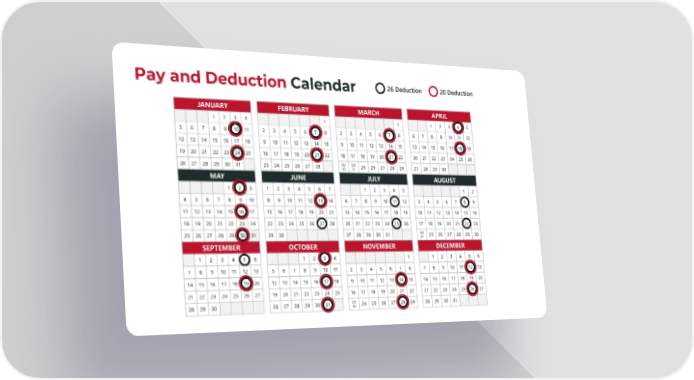 Pay and Deduction Calendar 26 Deduction 20 Deduction JANUARY FEBRUARY MARCH APRIL 1 2 3 4 1 1 1 2 3 4 5 5 6 7 8 9 10 11 2 3 4 5 6 7 8 2 3 4 5 6 7 8 6 7 8 9 10 11 12 12 13 14 15 16 17 18 9 10 11 12 13 14 15 9 10 11 12 13 14 15 13 14 15 16 17 18 19 19 20 21 22 23 24 25 16 17 18 19 20 21 22 16 17 18 19 20 21 22 20 21 22 23 24 25 26 26 27 28 29 30 31 23 24 25 26 27 28 23/ 24/ 25 29 27 28 29 27 28 29 30 30 31 MAY JUNE JULY AUGUST 1 2 3 1 2 3 4 5 6 7 1 2 3 4 5 1 2 4 5 6 7 8 9 10 8 9 10 11 12 13 14 6 7 8 9 10 11 12 3 4 5 6 7 8 9 11 12 13 14 15 16 17 15 16 17 18 19 20 21 13 14 15 16 17 18 19 10 11 12 13 14 15 16 18 19 20 21 22 23 24 22 23 24 25 26 27 28 20 21 22 23 24 25 26 17 18 19 20 21 22 23 25 26 27 28 29 30 31 29 30 27 28 29 30 31 24/ 25 26 27 28 29 30 31 SEPTEMBER OCTOBER NOVEMBER DECEMBER 1 2 3 4 5 6 1 2 3 4 1 1 2 3 4 5 6 7 8 9 10 11 12 13 5 6 7 8 9 10 11 2 3 4 5 6 7 8 7 8 9 10 11 12 13 14 15 16 17 18 19 20 12 13 14 15 16 17 18 9 10 11 12 13 14 15 14 15 16 17 18 19 20 21 22 23 24 25 26 27 19 20 21 22 23 24 25 16 17 18 19 20 21 22 21 22 23 24 25 26 27 28 29 30 26 27 28 29 30 31 23/ 24 25 26 27 28 29 28 29 30 31 30
