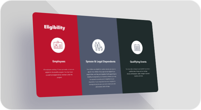 Eligibility Employees Spouse & Legal Dependents Qualifying Events All employees working 15 hours per week, or more are Your children are eligible for medical, dental, and vision to You may make a change to your benefits if you have a eligible for the benefits program. You may insure age 26. Your children of any age are also eligible if you qualified status change such as: marriage yourself and eligible family members under the support them, and they are incapable of self-support due to divorce, birth/adoption, death, changes in spouse’s program. disability. As required by our insurance contracts, you may benefits, and more. be required to provide proof of eligibility for your dependents. If your dependent becomes ineligible for coverage during the year, you must contact your plan administrator within 30 days.