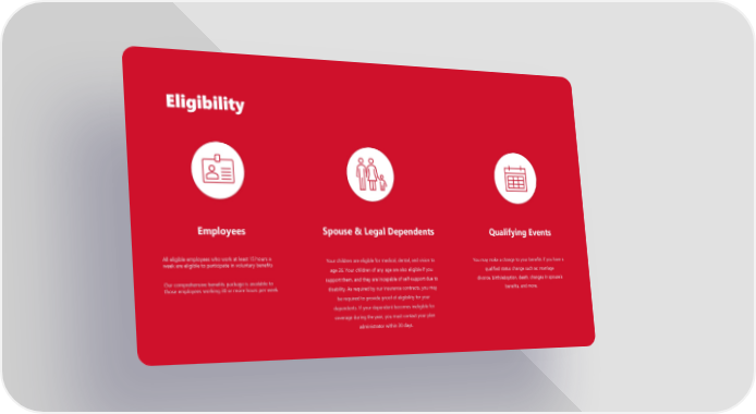 Employees All eligible employees who work at least 15 hours a week are eligible to participate in voluntary benefits Our comprehensive benefits package is available to those employees working 30 or more hours per week. Spouse & Legal Dependents Your children are eligible for medical, dental, and vision to age 26. Your children of any age are also eligible if you support them, and they are incapable of self-support due to disability. As required by our insurance contracts, you may be required to provide proof of eligibility for your dependents. If your dependent becomes ineligible for coverage during the year, you must contact your plan administrator within 30 days. Qualifying Events You may make a change to your benefits if you have a qualified status change such as: marriage divorce, birth/adoption, death, changes in spouse’s benefits, and more. Eligibility