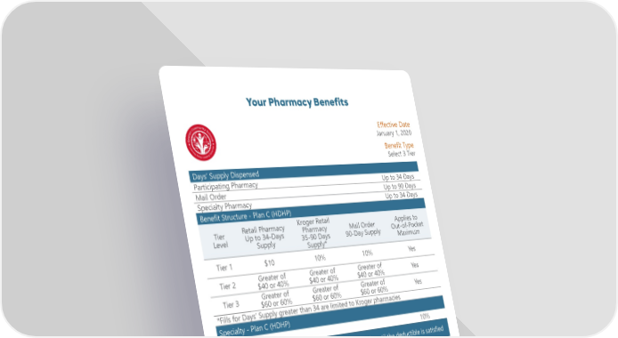 Your Pharmacy Benefits Eff ective Date January 1, 2020 Benefi t Type Select 3 Tier Days’ Supply Dispensed Participating Pharmacy Up to 34 Days Mail Order Up to 90 Days Specialty Pharmacy Up to 34 Days Benefi t Structure - Plan C (HDHP) Kroger Retail Retail Pharmacy Applies to Tier Pharmacy Mail Order Up to 34-Days Out-of-Pocket Level 35-90 Days 90-Day Supply Supply Maximum Supply* Tier 1 $10 10% 10% Yes Greater of Greater of Greater of Tier 2 Yes $40 or 40% $40 or 40% $40 or 40% Greater of Greater of Greater of Tier 3 Yes $60 or 60% $60 or 60% $60 or 60% *Fills for Days’ Supply greater than 34 are limited to Kroger pharmacies Specialty - Plan C (HDHP) Lumicera Pharmacy 10% Annual Deductible - Plan C (HDHP) - copays will not apply until the deductible is satisfi ed Combined Individual Deductible $3,200 Medical and Rx Combined Family Maximum $6,400 Medical and Rx Annual Out-of-Pocket Maximum - Plan C (HDHP) - copays will no longer apply once the out-of-pocket maximum is satisfi ed Combined Individual Maximum $5,950 Medical and Rx Combined Family Maximum $11,900 Medical and Rx Tier 1: Usually includes generic medications Tier 2: Usually includes preferred brand-name medications Tier 3: Usually includes non-preferred brand-name medications 1410-1119MB
