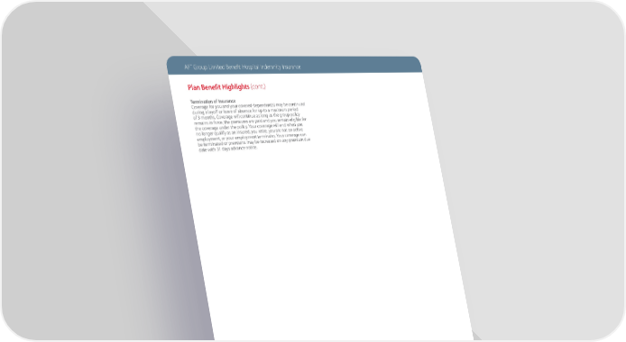 AF™ Group Limited Bene昀椀t Hospital Indemnity Insurance Plan Benefit Highlights (cont.) Termination of Insurance Coverage for you and your covered dependent(s) may be continued during a layoff or leave of absence for up to a maximum period of 3 months. Coverage will continue as long as the group policy remains in force, the premiums are paid and you remain eligible for the coverage under the policy. Your coverage will end when you no longer qualify as an insured, you retire, you are not on active employment, or your employment terminates. Your coverage can be terminated or premiums may be increased on any premium due date with 31 days advance notice. American Fidelity Assurance Company 9000 Cameron Parkway, Oklahoma City, Oklahoma 73114 800-662-1113 • americanfidelity.com SB-32381(IN)(AFES)-0720 Policy Form Series: G1402
