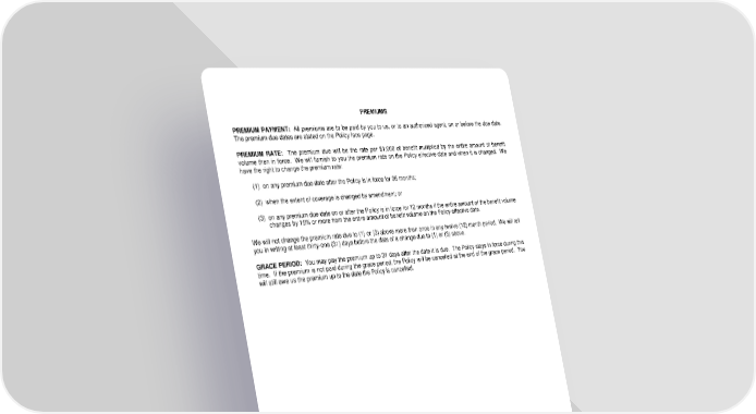 PREMIUMS PREMIUM PAYMENT: All premiums are to be paid by you to us, or to an authorized agent, on or before the due date. The premium due dates are stated on the Policy face page. PREMIUM RATE: The premium due will be the rate per $1,000 of benefit multiplied by the entire amount of benefit volume then in force. We will furnish to you the premium rate on the Policy effective date and when it is changed. We have the right to change the premium rate: (1) on any premium due date after the Policy is in force for 36 months; (2) when the extent of coverage is changed by amendment; or (3) on any premium due date on or after the Policy is in force for 12 months if the entire amount of the benefit volume changes by 15% or more from the entire amount of benefit volume on the Policy effective date. We will not change the premium rate due to (1) or (3) above more than once in any twelve (12) month period. We will tell you in writing at least thirty-one (31) days before the date of a change due to (1) or (3) above. GRACE PERIOD: You may pay the premium up to 31 days after the date it is due. The Policy stays in force during this time. If the premium is not paid during the grace period, the Policy will be cancelled at the end of the grace period. You will still owe us the premium up to the date the Policy is cancelled. LRS-6422-8 Ed. 07/09 Page 7.0
