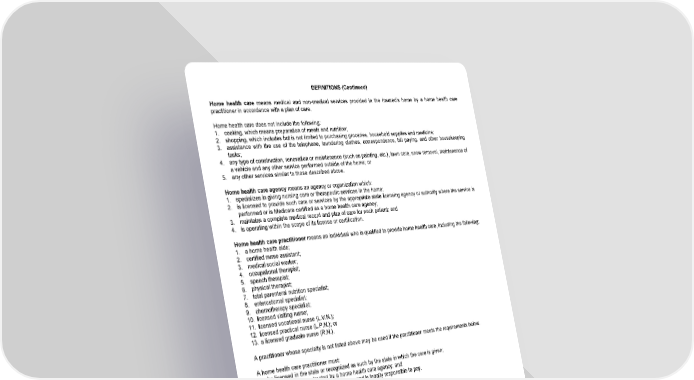 DEFINITIONS (Continued) Home health care means medical and non-medical services provided in the insured’s home by a home health care practitioner in accordance with a plan of care. Home health care does not include the following: 1. cooking, which means preparation of meals and nutrition; 2. shopping, which includes but is not limited to purchasing groceries, household supplies and medicine; 3. assistance with the use of the telephone, laundering clothes, correspondence, bill paying, and other housekeeping tasks; 4. any type of construction, renovation or maintenance (such as painting, etc.), lawn care, snow removal, maintenance of a vehicle and any other service performed outside of the home; or 5. any other services similar to those described above. Home health care agency means an agency or organization which: 1. specializes in giving nursing care or therapeutic services in the home; 2. is licensed to provide such care or services by the appropriate state licensing agency or authority where the service is performed or is Medicare certified as a home health care agency; 3. maintains a complete medical record and plan of care for each patient; and 4. is operating within the scope of its license or certification. Home health care practitioner means an individual who is qualified to provide home health care, including the following: 1. a home health aide; 2. certified nurse assistant; 3. medical social worker; 4. occupational therapist; 5. speech therapist; 6. physical therapist; 7. total parenteral nutrition specialist; 8. enterostomal specialist; 9. chemotherapy specialist; 10. licensed visiting nurse; 11. licensed vocational nurse (L.V.N.); 12. licensed practical nurse (L.P.N.); or 13. a licensed graduate nurse (R.N.). A practitioner whose specialty is not listed above may be used if the practitioner meets the requirements below. A home health care practitioner must: 1. be licensed in the state or recognized as such by the state in which the care is given; 2. be employed or contracted by a home health care agency; and 3. charge for the care given which the insured is legally responsible to pay. A home health care practitioner must not: 1. be a family member by blood, marriage, or adoption; or 2. reside at the insured’s address. Inpatient means an insured who is a resident patient using the room and board facilities of an assisted living facility or nursing care facility. Licensed health care practitioner means a physician or any registered professional nurse, licensed social worker, or other individual who meets such requirements as described by the Secretary of the Treasury. A licensed health care practitioner must not be a family member by blood, marriage, or adoption. Maintenance or personal care services mean any care the primary purpose of which is to provide needed assistance with any of the ADLs as a result of the insured being chronically ill (including the protection from threats to health and safety due to severe cognitive impairment). GWPLTCE1IN Page 3