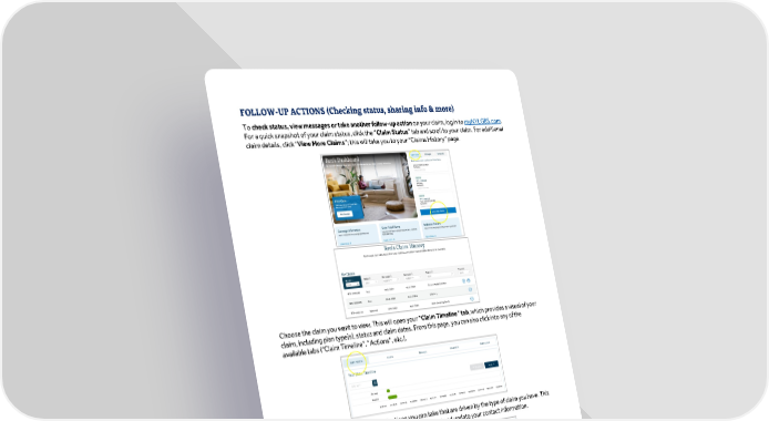 To check status, view messages or take another follow-up action on your claim, log in to myNYLGBS.com. For a quick snapshot of your claim status, click the “Claim Status” tab and scroll to your claim. For additional claim details, click “View More Claims”; this will take you to your “Claims History” page. Choose the claim you want to view. This will open your “Claim Timeline” tab, which provides a visual of your claim, including plan type(s), status and claim dates. From this page, you can also click into any of the available tabs (“Claim Timeline”, “Actions”, etc.). The “Actions” tab provides a list of actions you can take that are driven by the type of claim you have. This will include the ability to do things like upload a document and update your contact information. To upload a supporting document to your claim, click the “Upload a Document” link on the “Actions” tab, then select and upload your file. Eff. 01/2024