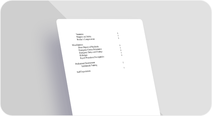 Vacancies 6 Weapons and Safety 4 Worker’s Compensation 6 Miscellaneous Direct Deposit of Paychecks 9 Emergency Contact Information 9 Emergency Delays and Closings 9 ID Badges 9 Payroll Procedures/Discrepancies 9 Professional Development SafeSchools Training 7 Staff Expectations 1