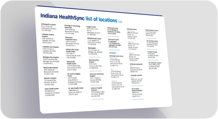 Indiana HealthSync list of locations cont. Indianapolis Hospital Oncology & Hematology Surgery Center Memorial Hospital OrthoIndy Fishers Schneck Medical Center 8111 S Emerson Specialists 5255 E Stop 11 Rd 615 N Michigan St Physical Therapy 411 W. Tipton Street Indianapolis, IN 46237 1215 Hadley Rd Ste 110 South Bend, IN 46601 10995 N. Allisonville Seymour, IN 47274 317-528-5000 Mooresville, IN 46158 Indianapolis, IN 46237 574-234-9041 Rd. Ste. 101 800-234-9222 317-831-1160 317-865-5900 ———————————— Fishers, IN 46038 ———————————— Lafayette Central 317-956-1280 Hospital Rensselaer Win昀椀eld Health Center Memorial Hospital The South Bend Clinic 1501 Hartford St Outpatient Clinics 11161 Randolph St of Logansport Urgent Care 211 North Eddy Street Lafayette, IN 47904 1104 E Grace St Crown Point, IN 46307 1101 Michigan Ave 10995 N. Allisonville South Bend, IN 46617 765-447-6811 Rensselaer, IN 47978 219-662-6165 Logansport, IN 46947 Rd. Ste. 102 574-234-8161 219-866-5141 574-753-7541 Fishers, IN 46038 ———————————— Lafayette East Hospital WorkingWell ———————————— 317-915-8110 1701 S Creasy Ln Schererville Family 4111 S Franklin St St Joseph Hospital Lafayette, IN 47905 Health Center Michigan City, IN 46360 OrthoIndy: Urgent Care 700 Broadway 765-502-4000 221 S Rte 41 219-879-5400 10995 N. Allisonville Fort Wayne, IN 46802 Schererville, IN 46375 ———————————— OrthoIndy Center Grove Rd. Ste. 102 260-425-3000 Michigan City Hospital 219-322-1600 Physical Therapy Fishers, IN 46038 3500 Franciscan Way Good Samaritan 1579 Olive Branch 317-802-2000 ———————————— Michigan City, IN 46360 Schererville Hospital Parke Ln. Ste. 100 The Orthopedic Hospital 219-879-8511 Health Center 520 S 7th St Greenwood, IN 46143 OrthoIndy Greencastle 7952 W Jefferson Blvd 7310 W Lincoln Hwy Vincennes, IN 47591 317-884-5113 Clinic Fort Wayne, IN 46804 Mooresville Hospital Schererville, IN 46375 812-882-5220 1003 Mill Pond Ln. 260-435-2999 1201 Hadley Rd 219-757-5670 Clinic Greencastle, IN 46135 Mooresville, IN 46158 ———————————— 1579 Olive Branch 800-663-1201 317-831-1160 St. Francis Imaging Kosciusko Community Parke Ln. Ste. 130 Center Hospital Greenwood, IN 46143 OrthoIndy Lafayette Munster Hospital 3147 W Smith 2101 E Dubois Dr 317-884-5111 Clinic 701 Superior Ave Valley Rd Ste D Warsaw, IN 46580 2403 Loy Dr. Ste. 204 Munster, IN 46321 Greenwood, IN 46143 574-267-3200 Urgent Care Lafayette, IN 47909 219-922-4200 317-865-5000 1579 Olive Branch 765-250-36791 ———————————— Parke Ln. Ste. 130 Omni Health Center St. John Health Center Lutheran Hospital Greenwood, IN 46143 ———————————— 810 Michael Dr 10860 Maple Ln of Indiana 317-802-2000 Perry County Chesterton, IN 46304 Saint John, IN 46373 7950 W Jefferson Blvd Memorial Hospital 219-983-9832 219-757-5670 Fort Wayne, IN 46804 8885 IN-237, 260-435-7001 Tell City, IN 47586 ———————————— 812-547-7011 ————————————