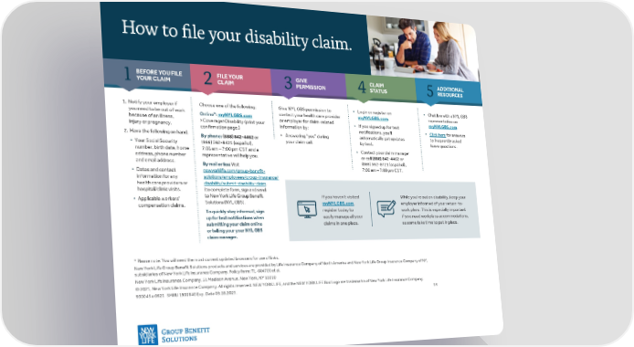 A step-by-step guide detailing the process of filing a disability claim with New York Life Group Benefit Solutions.